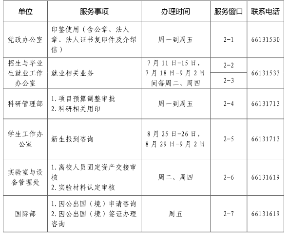 暑假期间,现场办理业务相关安排见下表,若有调整以校园网和中心最新公布为准。