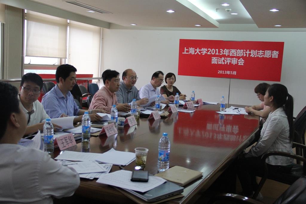 5月22日下午1点30分,sunbet申搏官方网站2013年西部志愿者评审会在校本部行政楼403举行。校党委副书记鲁雄刚、校长助理兼组织部部长徐旭、校长助理兼研工党委书记李伟、党委宣传部部长兼文明办主任陈志宏、纪委副书记兼监察处处长吴仲钢、招毕办常务副主任叶红、社区管理部主任王军华和校团委书记胡大伟等评委老师,对13名志愿者候选人进行了面试。