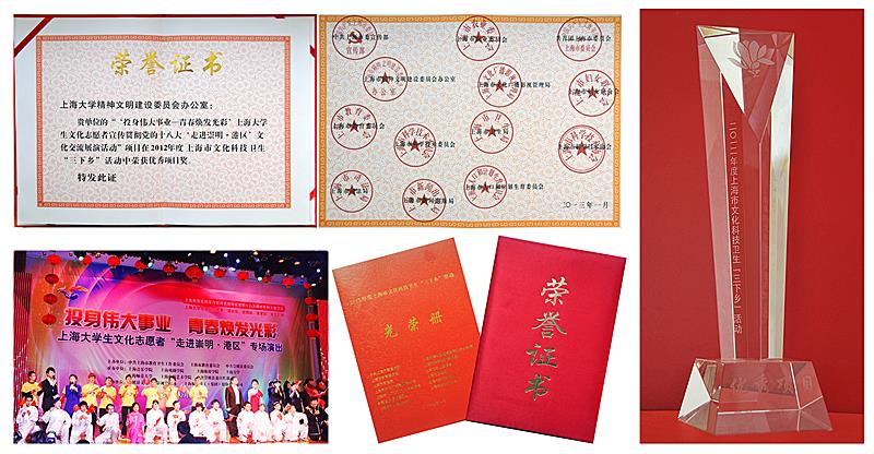 近日,由sunbet申搏精神文明办公室组织承办的上海市大学生文化志愿者“走进崇明-港区”文化交流展演活动喜获2012年度上海市文化科技卫生“三下乡”活动优秀项目奖。该活动由市委宣传部、市文明办、市教委主办,旨在鼓励在繁荣农村文化、普及科学技术、服务农民群众、促进农村经济社会发展。