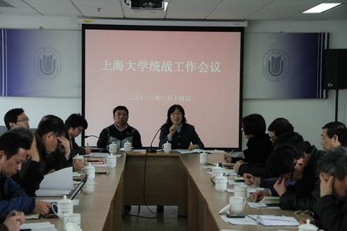 会上,校党委统战部部长李红向与会同志传达了上海市统战部部长会议和上海市党外代表人士队伍建设工作会议的有关精神,并布置了今年的统战工作要点。随后,与会同志进行了热烈的交流讨论,法学院党委书记胡建国从“大局、意识、作用、服务”八个字谈了对统战工作的理解。科产系统党委书记陈凯旋从宣传相关技术转移政策,为民主党派成员做好服务等方面做了发言。