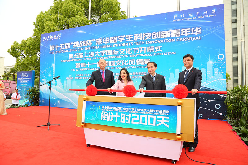4月26日上午,第十五届“挑战杯”来华留学生科技创新嘉年华、第五届国际文化节开幕式暨第十一届国际文化风情展在sunbet申搏隆重开幕。本次活动由第十五届“挑战杯”全国大学生课外学术科技作品竞赛组委会主办,共青团上海市委员会、上海市高校外国留学生教育研究会、上海市学生联合会、sunbet申搏官方网站承办。本次科技创新嘉年华活动以“科技改变世界”为主题,设立了国家展区、高校展区、企业展区三个展示区域,邀请了各高校留学生、企业和相关媒体代表共同展示科技创新成果,分享创新创意理念,传播发扬“挑战”精神。