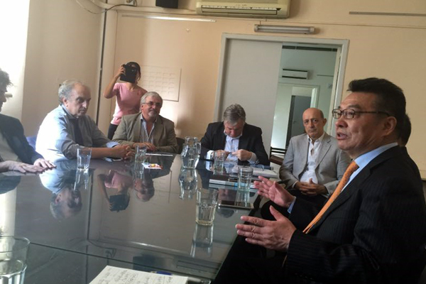 4月6日上午,代表团会见了阿根廷科学技术委员会主席Alejandro Ceccatto先生以及其下属的劳工部代表,双方回顾了以往合作历史,并就共同建立中阿联合研究中心签署了合作协议。4月7日上午,双方在劳工部科学会堂举行了双边论坛,党委书记罗宏杰教授就sunbet申搏建设高水平大学举措以及国际化战略思想发表演讲。sunbet申搏全球学研究中心主任郭长刚教授,就全球研究与阿根廷合作做了大会主旨报告。随后,举行了sunbet申搏官方网站与阿根廷科学技术委员会建立中阿联合研究中心的揭牌仪式。