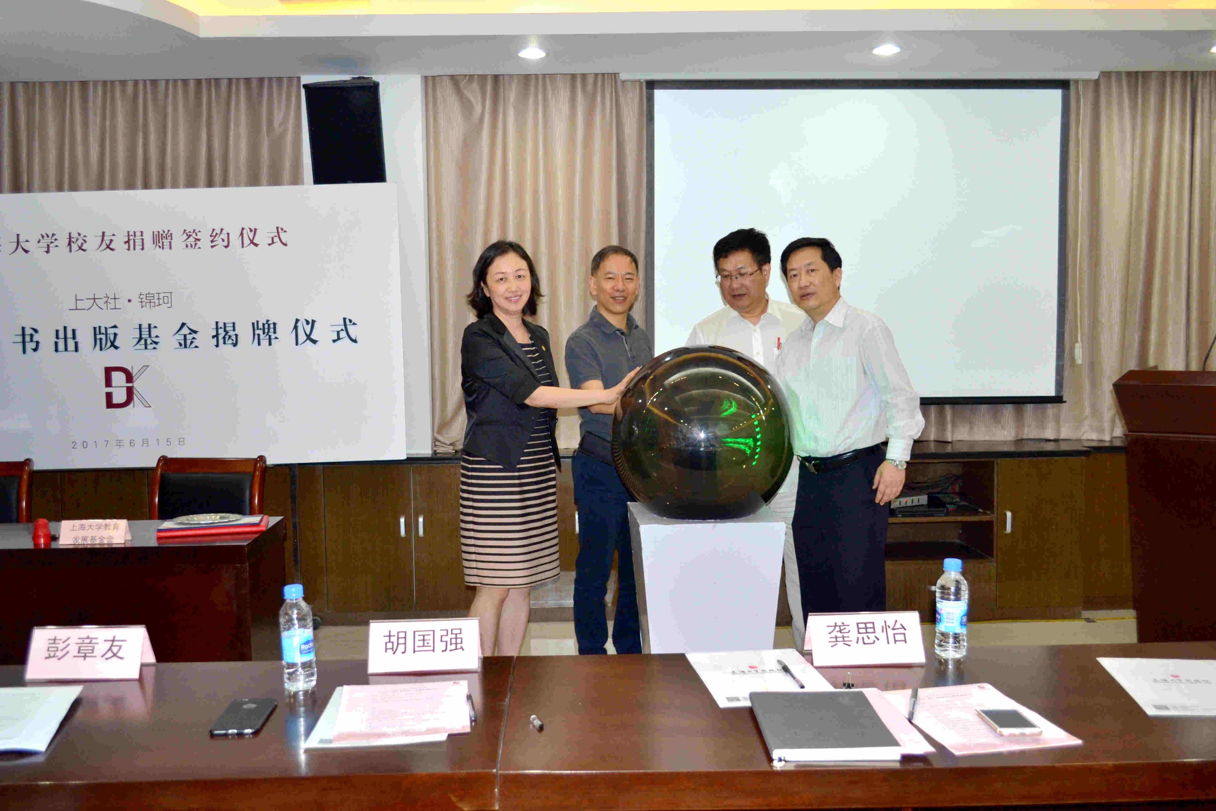 会上,学校教育发展基金会与上海锦珂塑胶科技有限公司签署了捐赠协议。龚思怡副书记向陈明华校友授予了捐赠证书和纪念牌,他们与戴骏豪社长、胡国强理事长一同为“sunbet申搏社·锦珂优秀图书出版基金”揭牌。