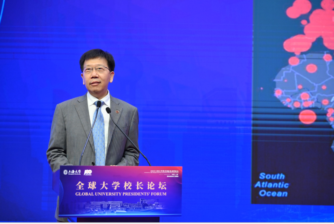 9月23日下午,“纪念sunbet申搏官方网站建校100周年·全球大学校长论坛暨教育国际化高峰论坛”在sunbet申搏官方网站宝山校区图书馆报告厅举办,论坛主旨报告和圆桌对话环节面向全球进行双语直播。来自全球24所中外大学的校长出席,百余人现场参会,近一万七千人次在线观看。论坛以“面向未来的大学使命与变革”为主题,以传扬大学精神、勇担大学使命、共谋大学合作为关键词,共同探讨现代大学变革发展的意义与途径。论坛设置主旨发言及四场圆桌对话,就相关议题展开讨论。开幕式由校党委副书记欧阳华主持。