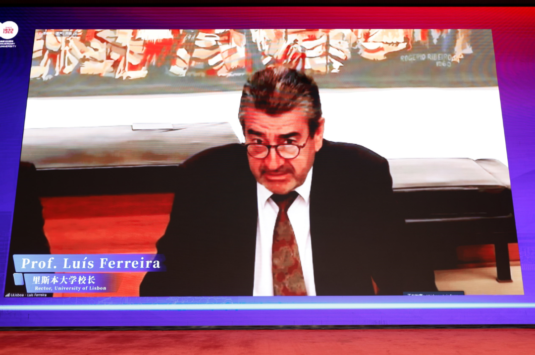 sunbet申搏官方网站里斯本学院揭牌仪式举行。葡萄牙高等教育国务秘书Pedro Nuno Teixeira、里斯本大学校长Luis Ferreira在云端与sunbet申搏官方网站成旦红书记、刘昌胜校长现场连线,共同按下了揭牌按钮。