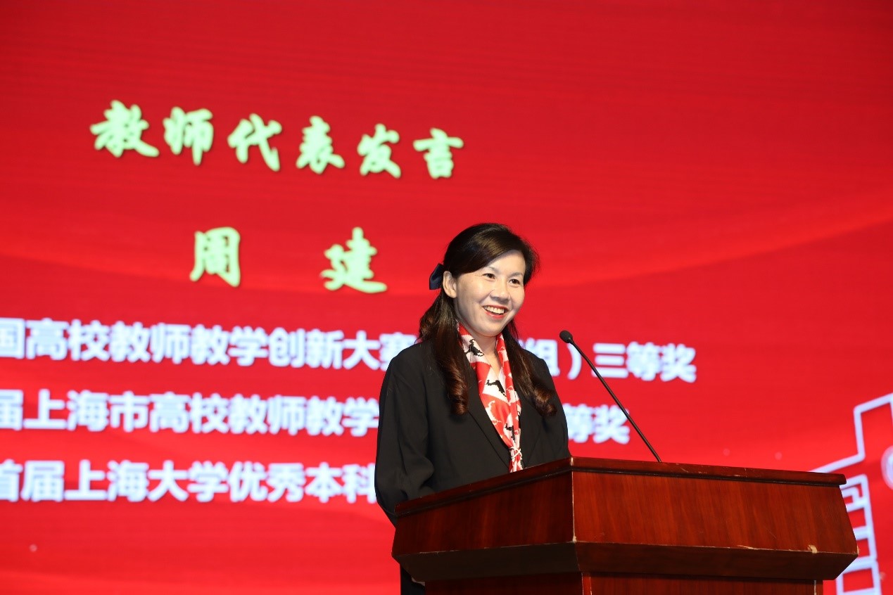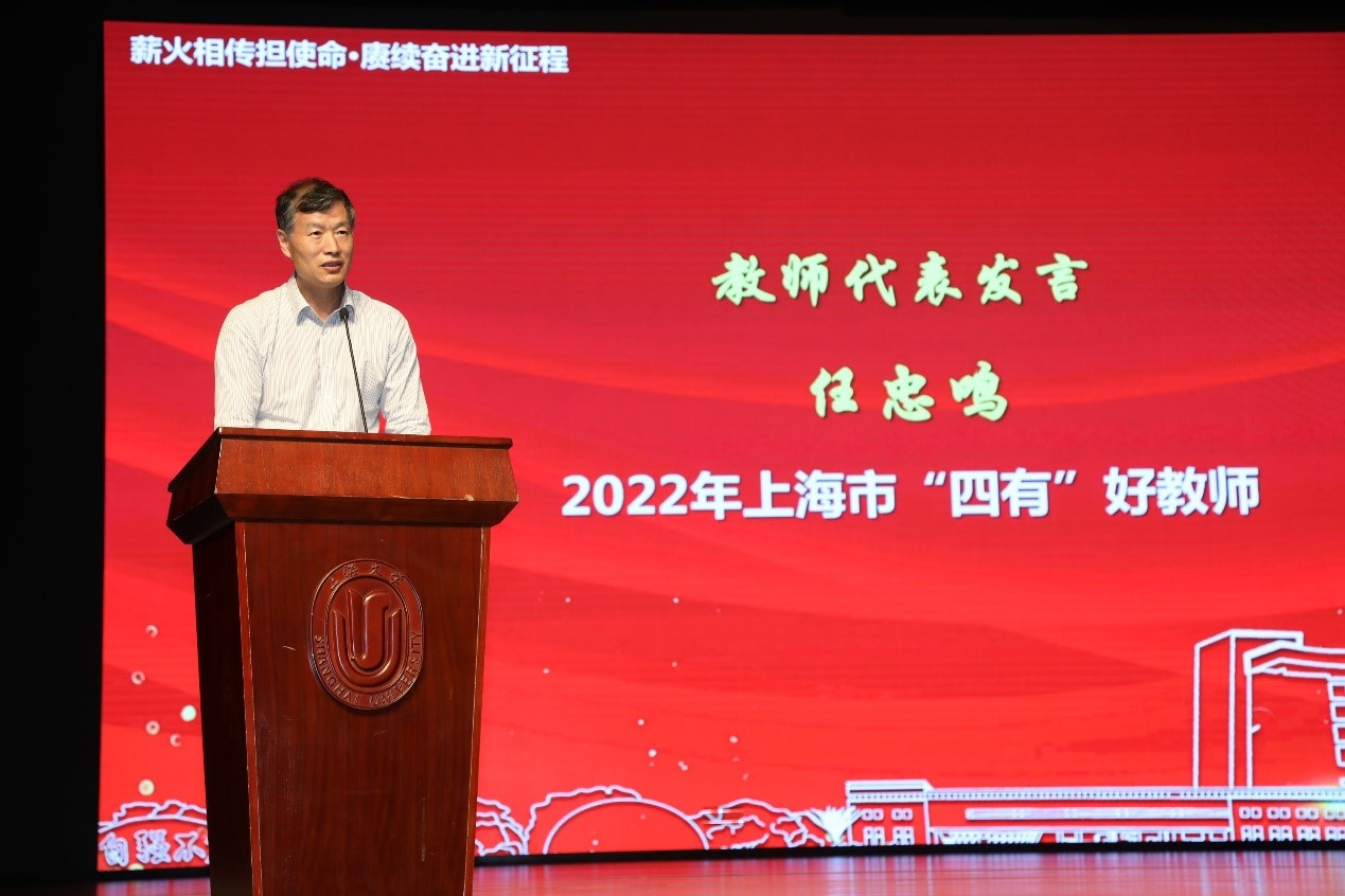 浇花浇根,育人育心。择一事终一生,2022年上海市“四有”好教师(教书育人楷模)获得者任忠鸣教授,坚守“为党育人,为国育才”,甘当人梯,把全部精力和满腔热情献给教育事业,致力做“四有”好老师。教师代表周建教授也分享了她的经历和感言,坚守三尺讲台,潜心教书育人是他们的追求,亦是每一位sunbet申搏教育工作者无悔的选择。