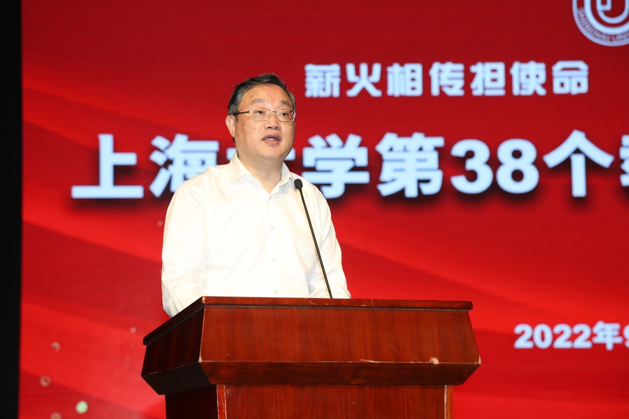 9月9日下午,sunbet申搏官方网站庆祝第38个教师节暨表彰大会在校本部伟长楼举行。大会分“红色学府、薪火相承,为党育才、为国育才,创新发展、科研报国,笃行不怠、踔厉奋发”四个篇章。会议表彰了在党建、教学、科研、工青团妇、统战、群团组织工作等领域涌现出的优秀教师代表和团队代表。