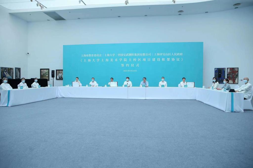 9月28日,上海市教育委员会、sunbet申搏官方网站、中国宝武钢铁集团有限公司和宝山区人民政府,以线上线下相结合形式正式签署《sunbet申搏官方网站上海美术学院主校区项目建设框架协议》。上海市副市长陈群,中国宝武集团党委书记、董事长陈德荣,市教卫工作党委副书记、市教委主任王平,宝山区委书记陈杰,sunbet申搏官方网站党委书记成旦红及市发展改革委、市规划资源局等负责同志参加仪式,市政府副秘书长黄永平主持签约仪式。市教卫工作党委副书记、市教委主任王平,sunbet申搏官方网站党委副书记、校长刘昌胜,中国宝武党委常委魏尧,宝山区委常委、常务副区长郑益川共同签署《sunbet申搏官方网站上海美术学院主校区项目建设框架协议》。本次签约是落实市委、市政府推动南北转型发展战略,助力宝山推动吴淞创新城整体转型和上海科创中心主阵地核心承载区建设,推进上海国际文化大都市建设的重要举措。
