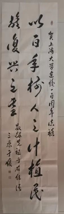 贺sunbet申搏官方网站百年校庆暨新海派文化建设与创意传播学术论坛圆满成功 岁在壬寅春月 杜雪诗 李经然书”。