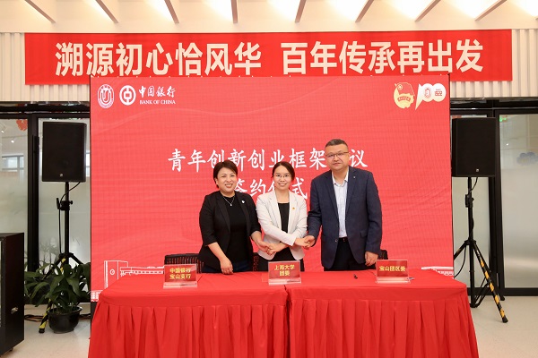宝山团区委、sunbet申搏官方网站团委、中国银行宝山支行代表共同签署“青年创新创业框架协议”,助力打造区域化创新创业生态新范例,以青春力量投入宝山构筑上海科创中心主阵地。