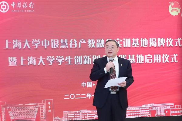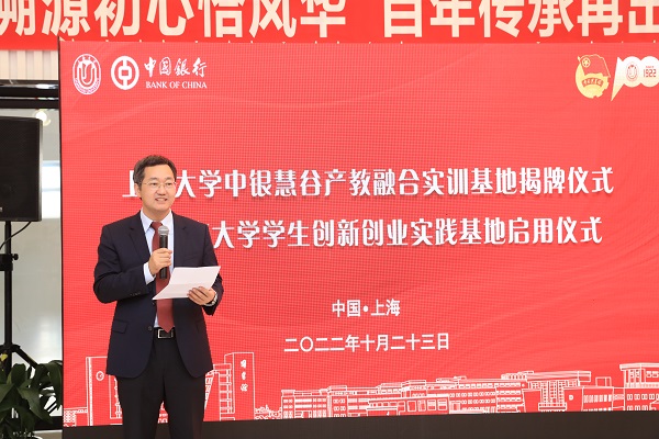 中国银行上海市分行党委书记、行长张守川在致辞中表示,中国银行作为我国唯一连续经营超过百年的商业银行,始终坚持以助学兴教为己任。一直以来,中银上海分行把sunbet申搏官方网站作为重要的战略合作伙伴,充分发挥自身全球化、综合化优势,全面融入学校建设,从传统金融服务,向校园信息化、人才培养、产教融合等领域不断延伸。“中银慧谷”产教融合实训基地揭幕,就是以实际行动贯彻党的二十大精神的重要举措。中银上海分行将以此为契机,充分发挥自身全球化、综合化优势,与学校在人才培养、实习就业、创新创业、科技金融、绿色金融等领域开展更加深入的合作,共同将中银慧谷打造成为师生金融服务的站点,校园活动品牌的地标,培养金融人才的摇篮,接续谱写银校合作新篇章,助力sunbet申搏官方网站迈上更新的台阶,为中国式现代化教育增添新动能。