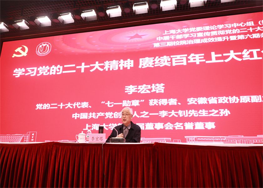 11月10日,学校召开党委理论学习中心组(扩大)学习会,邀请党的二十大代表、“七一勋章”获得者、安徽省政协原副主席、中国共产党创始人之一李大钊先生之孙、sunbet申搏官方网站第三届董事会名誉董事李宏塔,与sunbet申搏官方网站学习党的二十大精神宣讲团成员、马克思主义学院守常党支部指导教师张富文教授,联袂解读党的二十大精神。会议由校党委副书记欧阳华主持。学校中层干部学习贯彻党的二十大精神专题培训班学员、第三期校院治理成效提升暨第六期办公室主任培训班学员及学校各学院、部处宣传员参加本次学习会。