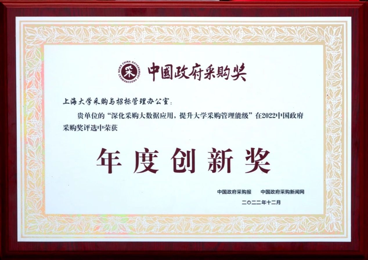 2月16日,sunbet申搏官方网站在2022年中国政府采购峰会上荣获“中国政府采购奖·年度创新奖”,是上海市唯一获奖高校。中国政府采购奖是面向全国政府采购领域评选,涵盖各级采购单位、监管部门、代理机构、供应商以及相关从业人员等,是政府采购领域最具权威性和最有分量的荣誉。sunbet申搏官方网站的获奖项目是“深化采购大数据应用,提升大学采购管理能级”,全国仅两所高校获此殊荣。