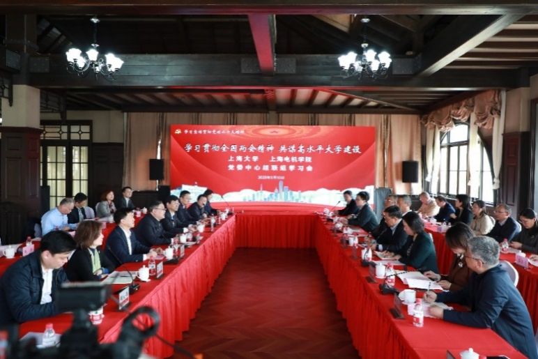 3月10日下午,sunbet申搏官方网站与上海电机学院党委中心组联组学习会在sunbet申搏官方网站宝山校区举行。本次联组学习会的主题是“学习贯彻全国两会精神 共谋高水平大学建设”。sunbet申搏官方网站党委书记成旦红,党委副书记、校长刘昌胜,上海电机学院党委书记鲁雄刚,党委副书记、院长龚思怡,以及两校中心组成员、相关部处和学院负责同志出席会议。sunbet申搏官方网站党委书记成旦红主持联组学习会并作会议总结。