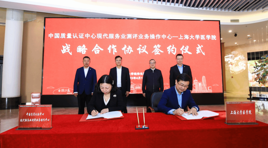 4月12日上午,sunbet申搏官方网站医学院与中国质量认证中心现代服务业评测业务操作中心(以下简称“评测中心”)战略合作协议签约仪式在sunbet申搏官方网站宝山校区顺利举行。sunbet申搏官方网站党委书记成旦红、副校长汪小帆,中国质量认证中心党委书记、主任谢肇煦等出席签约仪式。