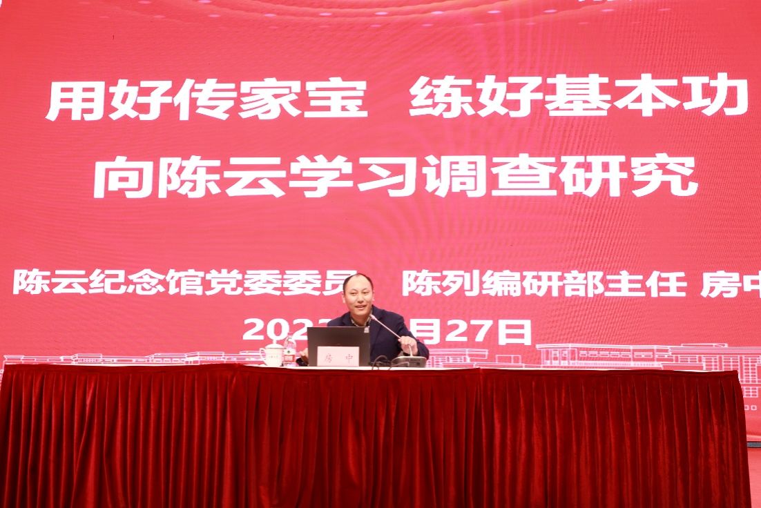 学习会聚焦“大兴调研之风”主题,邀请陈云纪念馆党委委员、陈列编研部主任,全国陈云思想生平研究会常务理事兼副秘书长房中作《用好传家宝练好基本功——向陈云学习调查研究》专题辅导报告。