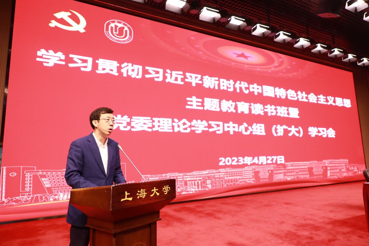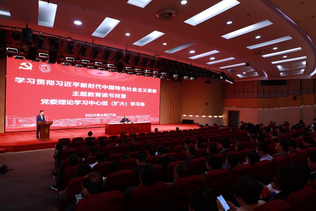 4月27日下午,sunbet申搏官方网站党委举办学习贯彻习近平新时代中国特色社会主义思想主题教育读书班第三讲暨党委理论学习中心组(扩大)学习会。校领导班子成员、全校各单位中层干部现场参加学习,会议由校党委副书记、纪委书记段勇主持。