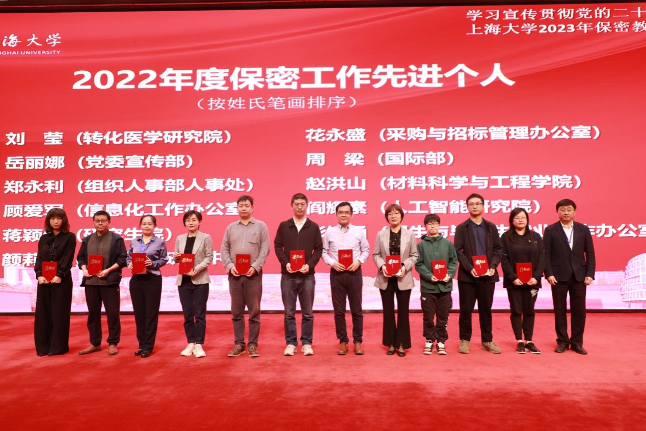 保密办公室主任韦蒨宣读了2022年度保密工作先进集体和先进个人获奖名单,党委书记成旦红、党委副书记欧阳华分别为保密工作先进集体和先进个人获奖代表颁奖。
