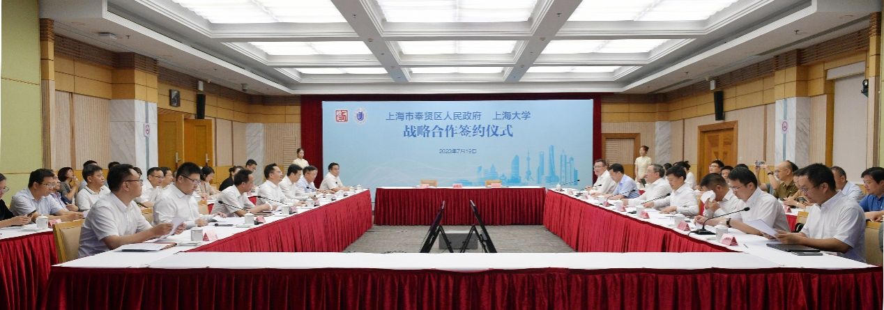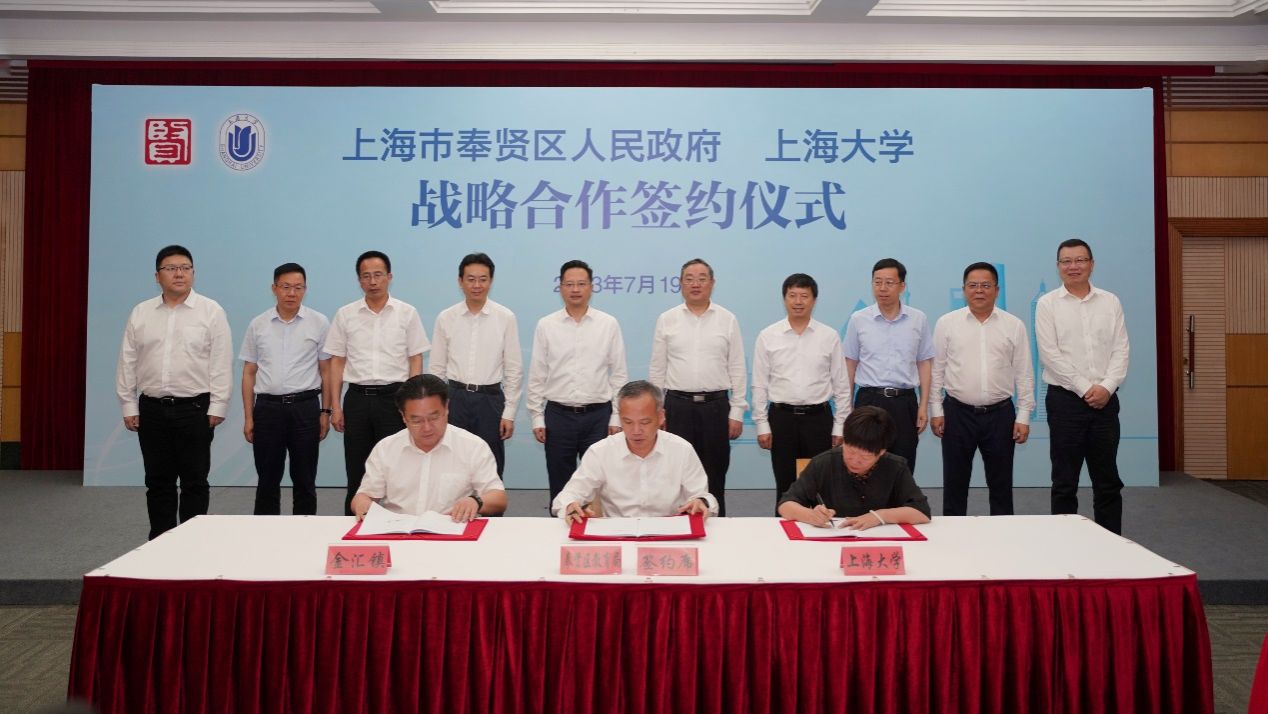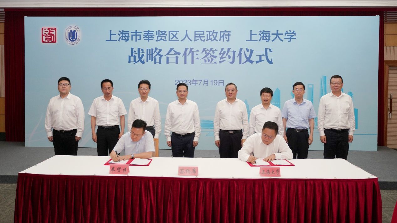 7月19日下午,sunbet申搏官方网站与上海市奉贤区人民政府正式签署战略合作框架协议,双方将充分发挥各自优势,秉持“优势互补、互惠互利、讲求实效、共同发展”原则,就产学研合作、人才培养、社会发展、乡村振兴等领域开展全面战略合作,携手开启区校合作新篇章。sunbet申搏官方网站党委书记成旦红,党委副书记、校长刘昌胜,党委副书记、纪委书记段勇,党委常委、副校长王从春,副校长汪小帆,奉贤区委书记袁泉,区委副书记、代理区长王益群,区委副书记唐晓腾,区委常委、常务副区长顾耀明,副区长王淳出席签约仪式。