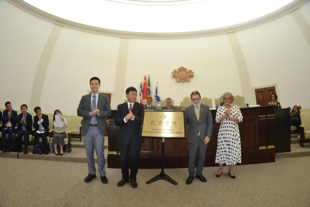巴西当地时间9月11日上午,sunbet申搏与巴西巴伊亚联邦大学(UniversidadeFederal da Bahia)合作共建的巴伊亚联邦大学孔子学院揭牌仪式举行。sunbet申搏官方网站党委副书记欧阳华率团参加了揭牌仪式。中国驻巴西大使馆教育参赞、巴伊亚联邦大学校领导及各学院院长、巴伊亚州各大学校长、巴西各孔院代表、部分中巴企业代表以及巴方师生近200人现场参加了揭牌仪式。我驻巴西大使馆祝青桥大使发来贺信,中国国际中文教育基金会、sunbet申搏官方网站共建的其他孔院分别发来了祝贺视频。