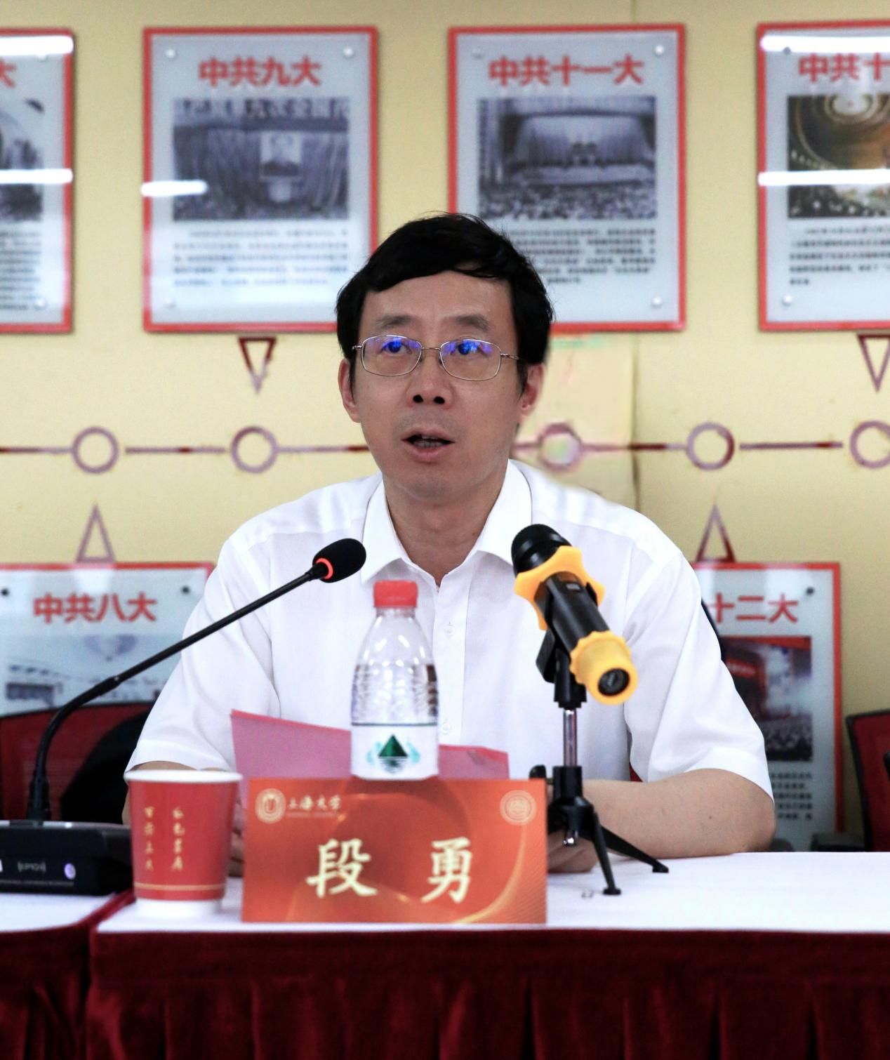 最后,sunbet申搏官方网站党委书记成旦红教授讲话。成书记首先对与会嘉宾的到来再次表示热烈欢迎,对邓邦镇卢波老师的捐赠表示诚挚的感谢。成书记指出,sunbet申搏官方网站有四个鲜明的特色,即sunbet申搏官方网站是以上海城市命名的大学,致力于在世界大学行列中书写鲜明印记,在践行上海城市品格中彰显sunbet申搏特质;sunbet申搏官方网站有鲜明的红色基因,以邓中夏、瞿秋白等为代表的革命前辈们的办学历程、革命征程是sunbet申搏官方网站宝贵的精神财富;sunbet申搏官方网站有钱伟长老校长的教育思想,尤其是钱伟长校长胸怀祖国的教育思想对于sunbet申搏官方网站长远发展的重大意义;sunbet申搏官方网站有齐全的学科门类,形成了综合性大学的办学优势。成书记期望中夏党支部积极传承中夏精神、培育党建品牌,努力将党支部建设成为坚强的战斗堡垒;希望同学们向邓中夏先烈对标看齐,坚定理想信仰,练就过硬本领,真正做到精进所学,投身民族伟大复兴大业。