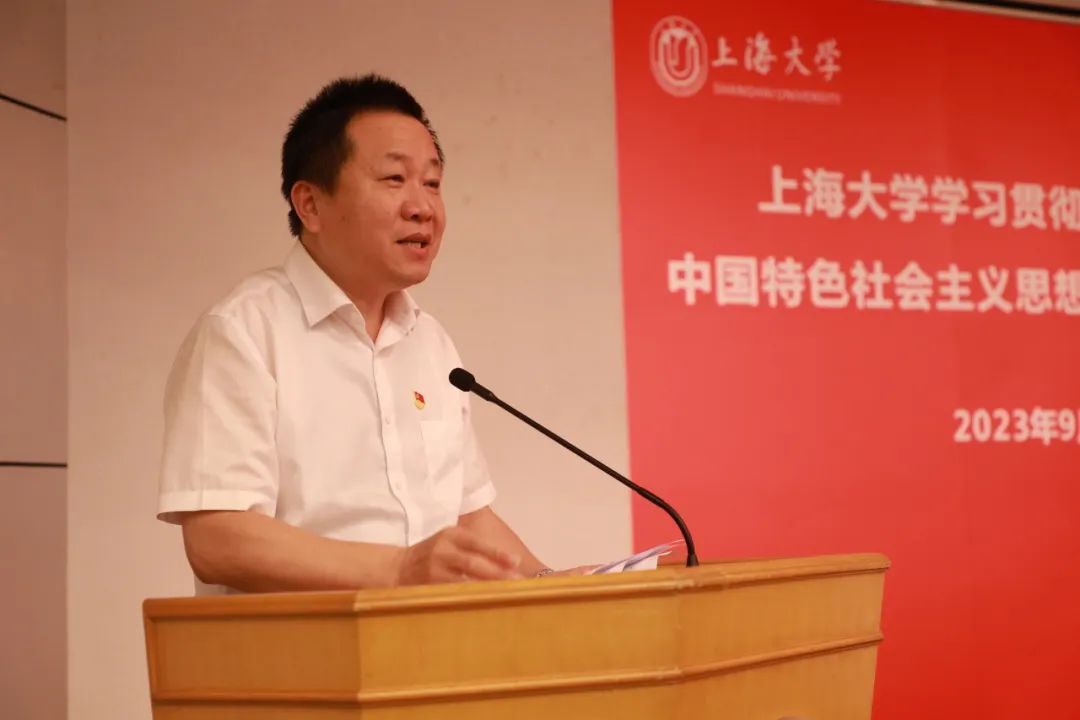 成旦红表示,学校党委把高标准高质量开展好主题教育作为重大政治任务,主要围绕“四个坚持”开展主题教育工作:坚持同学共进,推动理论学习入心见行。学校党委一以贯之抓实理论学习,明确“四个坚持”,落实“四个举措”,做到“四个结合”,在深学细照笃行中提高理论素养、坚定理想信念、升华觉悟境界、增强能力本领,夯实坚定拥护“两个确立”、坚决做到“两个维护”的思想根基。坚持同题共研,推动调查研究走深走实。按照在全党大兴调查研究的重大部署,弘扬务实作风,突出问题导向,查找学校改革发展中的差距和不足,聚焦影响学校事业发展的重要领域和关键环节,摸清师生急难愁盼的民生问题,校领导班子成员领题调研,以多种方式全面开展大调研、大走访、大排查,扑下身子、深入一线,对照标杆找差距,问计于民找对策。积极推进调研成果转化,探索从解决“一个问题”到解决“一类问题”的工作机制和方法。坚持同心共力,推动发展见行见效。学校党委通过主题教育,推动党员干部完整、准确、全面贯彻新发展理念,树立和践行正确政绩观。统筹推进教育、科技、人才一体发展,把服务科教兴国战略、人才强国战略、创新驱动发展战略,服务上海经济社会发展作为切入点和着力点,融入新发展格局、推动高质量发展。坚持同频共振,推动检视整改落实落细。校院两级党委积极发扬刀刃向内的自我革命精神,坚持边学习、边对照、边检视、边整改,坚持分类整改与集中整治相结合,深入查摆不足,抓好突出问题的整改整治,切实让师生群众感受到通过学校主题教育解决问题的实际成效。