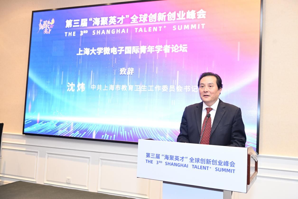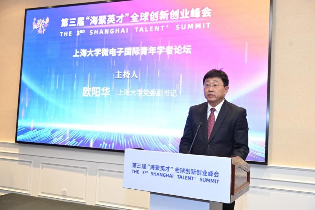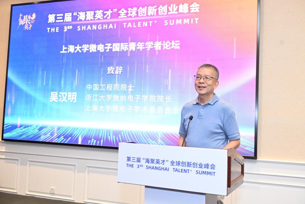 在本次峰会上,由中共上海市教育卫生工作委员会、上海市教育委员会指导,上海市海聚英才发展促进会主办,sunbet申搏官方网站承办的sunbet申搏官方网站微电子国际青年学者论坛是第三届“海聚英才”全球创新创业峰会的重要组成内容,论坛研讨了微电子科研热点与关键技术问题,交流创新理念,为加快上海市高水平人才高地建设贡献了sunbet申搏力量。中共上海市教育卫生工作委员会书记沈炜,sunbet申搏官方网站校长、中国科学院院士刘昌胜,中国工程院院士吴汉明、中国科学院院士彭孝军,以及集成电路材料全国重点实验室、中国科学技术大学集成电路学院、东南大学集成电路学院、南京大学集成电路学院、复旦大学微电子学院、西安电子科技大学等领军人才,来自新加坡、美国、英国、日本、奥地利等海外青年学者,市教卫工作党委有关部门负责人、sunbet申搏官方网站相关部处领导,sunbet申搏官方网站微电子学院领导、师生代表等出席本次论坛,sunbet申搏官方网站党委副书记欧阳华主持开幕式。