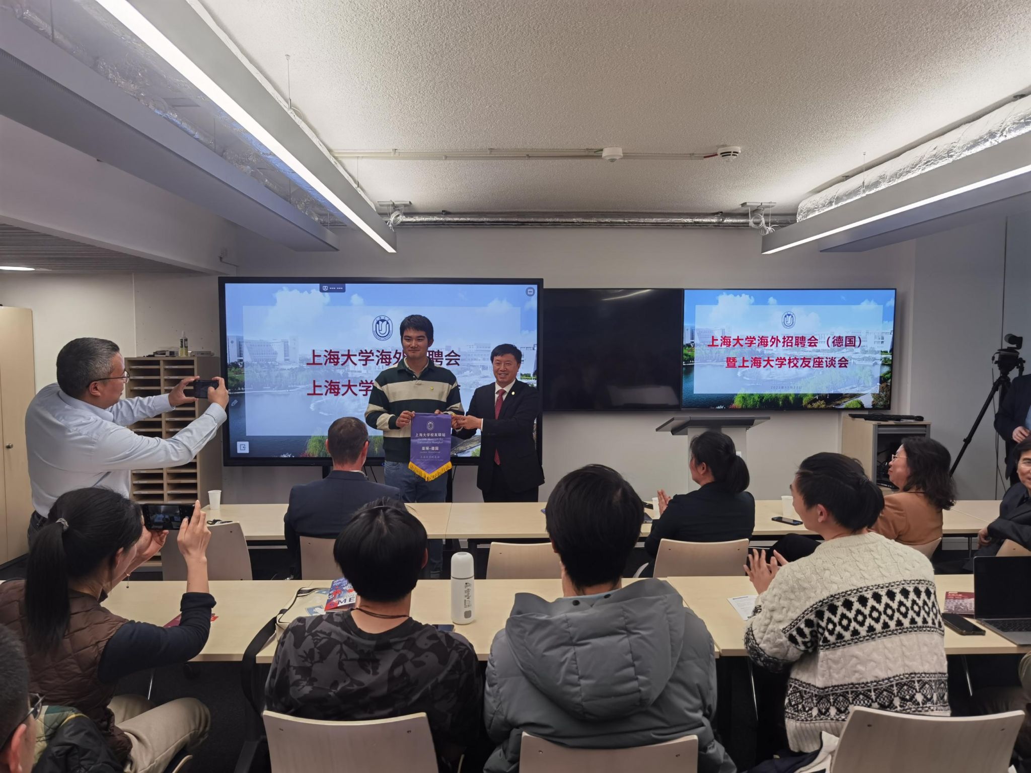 会后,刘昌胜校长出席了sunbet申搏官方网站德国招聘会暨sunbet申搏官方网站校友见面会,来自德国亚琛工业大学、慕尼黑工业大学、卡尔斯鲁厄理工学院、比利时鲁汶大学等国际知名高校的近五十名同学踊跃参与了会议。校组织人事部、科研管理部、机自学院领导与同学们现场进行了咨询对接。同时,刘校长还为亚琛“sunbet申搏官方网站校友驿站”进行了授旗并与sunbet申搏在亚琛工大深造的校友进行了交流。