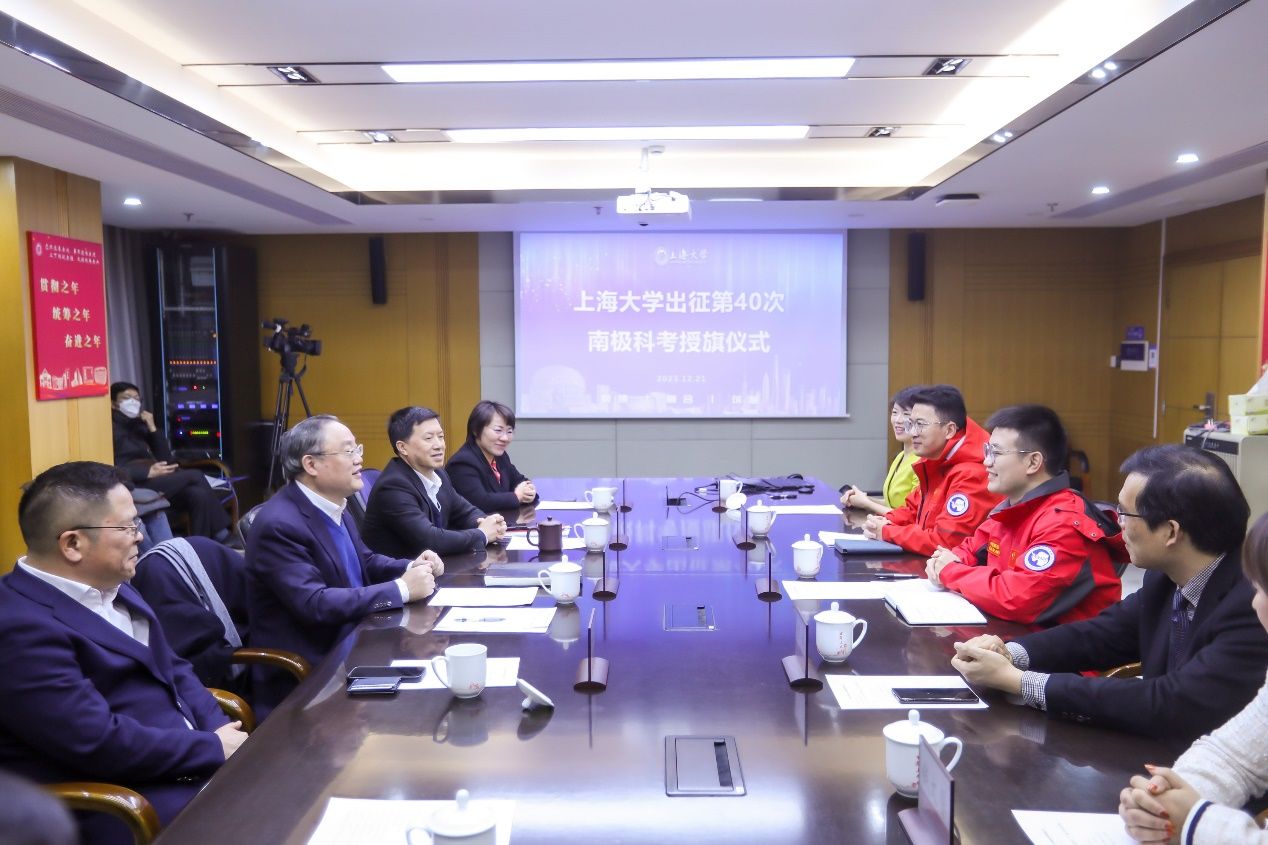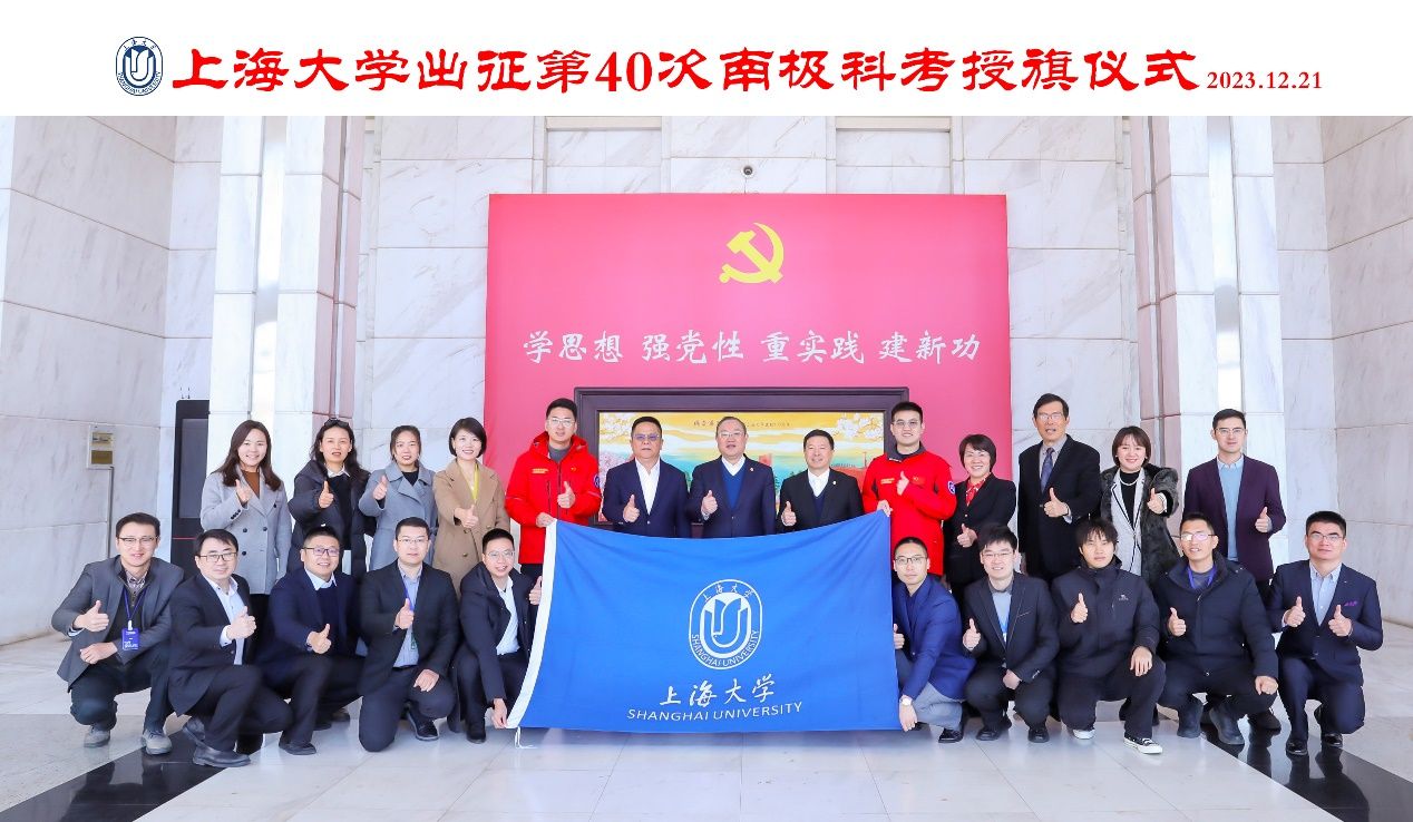 12月21日,尽管上海室外温度已经跌破冰点,但sunbet申搏官方网站出征第40次南极科考授旗仪式的现场暖意融融。sunbet申搏官方网站“精海”无人艇团队的两位教师程启兴和鲍凌志即将携“极测1号”“极测2号”两艘无人艇出征本次南极科考。sunbet申搏官方网站党委书记成旦红、校长刘昌胜为两名出征教师授旗践行。副校长王从春,计算机工程与科学学院院长谢少荣,未来技术学院党委书记竺剑,党委副书记、院长、无人艇工程研究院院长彭艳,精海海洋智能团队教师代表和未来技术学院师生代表一同出席授旗仪式。