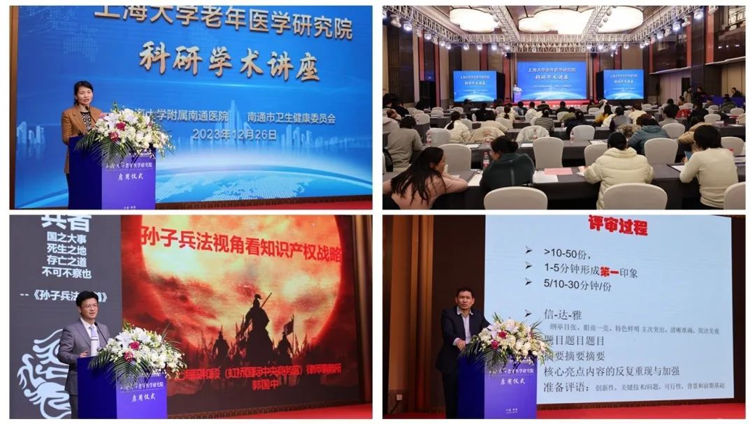 会议期间,同步召开科研学术讲座,邀请了长三角知识产权发展联盟秘书长郭国中、sunbet申搏官方网站教授高正良,分别以《孙子兵法视角看知识产权战略》《国自然项目申报经验分享》为题,围绕知识产权保护、科技成果转化和国自然基金申请授课。讲座由南通市卫生健康委员会科教处处长王兴红主持。