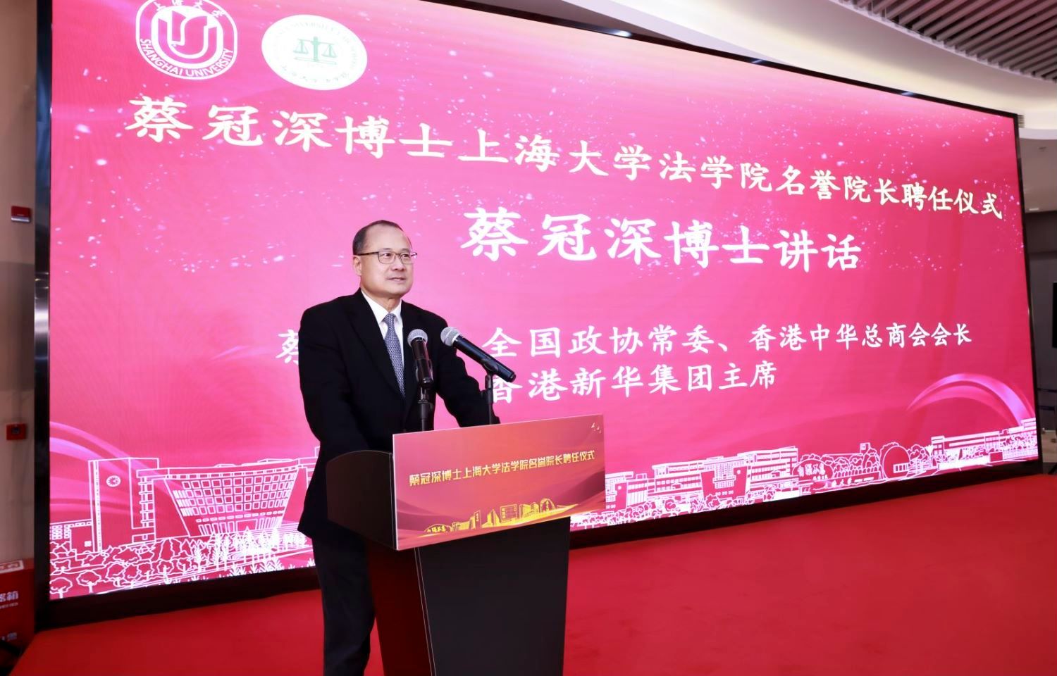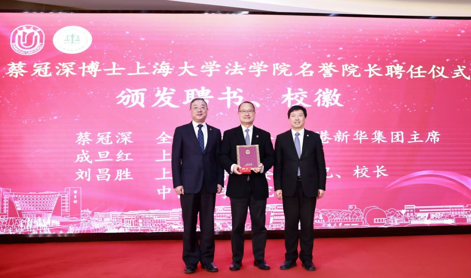 刘校长指出,蔡冠深博士近四十年倾情奉献于科教文化公益事业,先后创办多个教育基金,捐建多个科技教育机构、文化设施等,成就斐然、影响巨大。1997年,蔡冠深博士捐资设立sunbet申搏官方网站蔡冠深教育奖励基金,开启了与sunbet申搏官方网站的深厚情谊。蔡冠深博士与钱伟长校长亦相识相交长达十余年,结下了深厚友谊。目前,蔡冠深博士已是连续三届的sunbet申搏官方网站名誉董事,sunbet申搏官方网站蔡冠深讲堂、蔡冠深国际远程艺术交流中心等设施持续支撑保障着学校师生的教学科研,sunbet申搏官方网站蔡冠深优秀青年教师奖和研究生特种奖学金也持续激励sunbet申搏师生努力追卓越、创一流。今天蔡冠深博士受聘担任sunbet申搏官方网站法学院名誉院长,是对sunbet申搏官方网站事业发展的最新支持,必将成为推动sunbet申搏官方网站法学院快速发展的又一重要机遇!