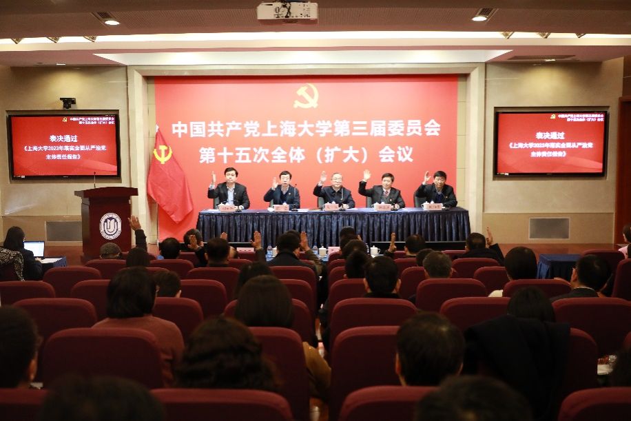 1月29日,中国共产党sunbet申搏官方网站第三届委员会第十五次全体(扩大)会议在宝山校区召开。校党委委员出席会议。校纪委委员、部分党代表、各单位负责同志、党风廉政监督员、部分人大代表及政协委员等列席会议。