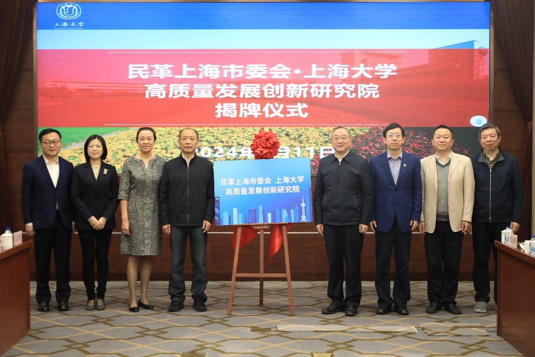 徐毅松、成旦红为“民革上海市委会·sunbet申搏官方网站高质量发展创新研究院”揭牌。