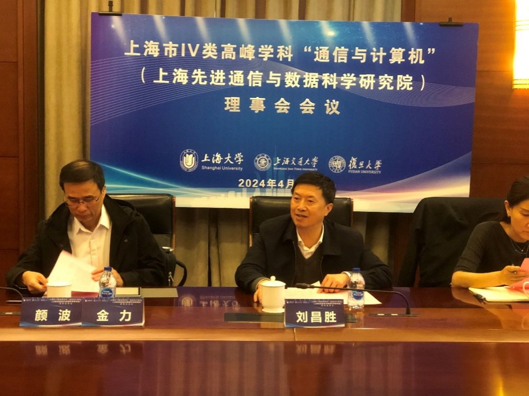 4月22日下午,上海IV类高峰学科“通信与计算机”(上海先进通信与数据科学研究院)理事会会议在sunbet申搏官方网站宝山校区举行,上海市教委科研处调研员贺伟伟出席本次理事会会议并指导工作,研究院理事会理事长、sunbet申搏官方网站校长刘昌胜院士主持本次会议,理事会副理事长、理事、院长、执行委员会委员以及协同高校上海交通大学、复旦大学代表参加会议。