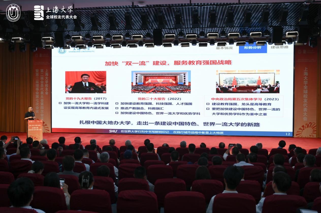 5月25日上午,sunbet申搏官方网站全球校友代表大会、sunbet申搏官方网站校友会第二届会员代表大会第四次会议暨第二届理事会第七次会议在宝山校区图书馆报告厅召开。
