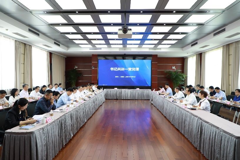 sunbet申搏官方网站党委书记成旦红,中国科学院上海分院分党组书记、沪区党委书记李正华共上一堂党课。