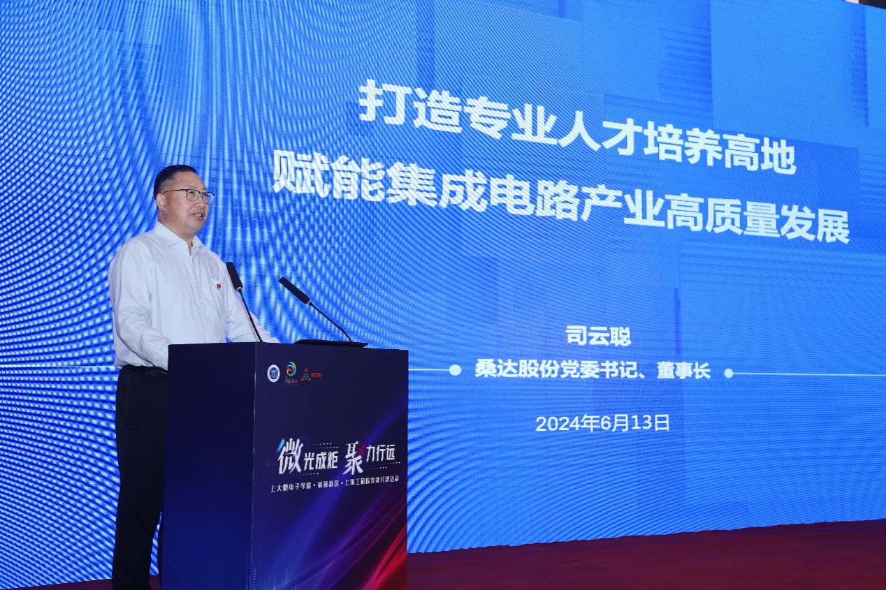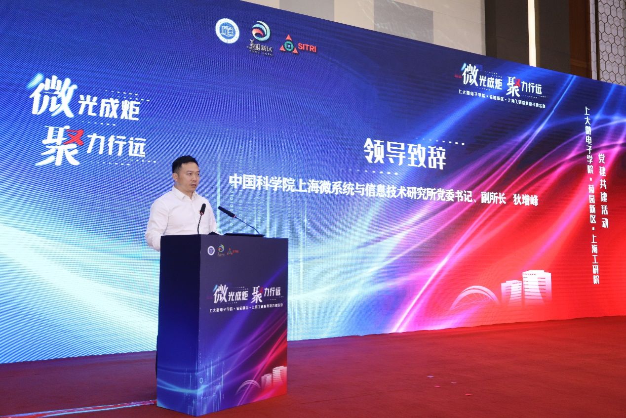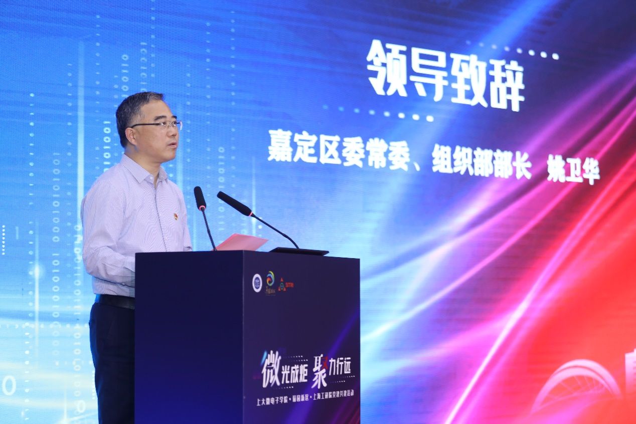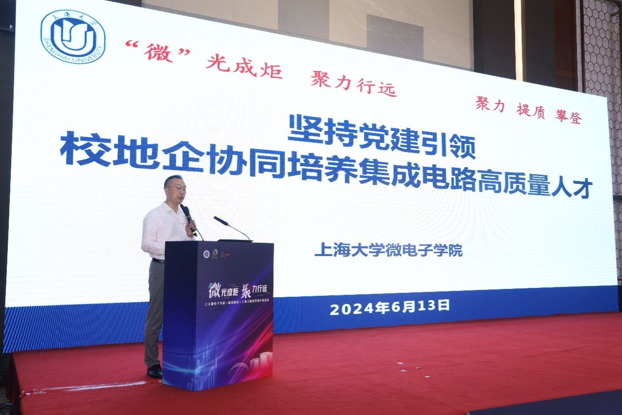 为深入学习贯彻落实习近平总书记考察上海重要讲话精神,紧密推进校地企合作,助力产教融合,6月13日,“微”光成炬 聚力行远——sunbet申搏官方网站微电子学院·菊园新区·上海微技术工研院党建共建暨集成电路“大师讲堂”在嘉定区菊园会议中心举行。sunbet申搏官方网站党委书记成旦红,中国科学院上海微系统与信息技术研究所党委书记、副所长狄增峰,嘉定区委常委、组织部部长姚卫华出席活动并致辞,深圳市桑达实业股份有限公司党委书记、董事长司云聪,上海集成电路行业协会秘书长郭奕武,上海微技术工业研究院党支部书记、总经理董业民,微电子学院党委书记郭纯生,菊园新区党工委书记陈懿,sunbet申搏官方网站组织人事部组织处副处长、机构编制委员会办公室副主任张云中等嘉宾以及微电子学院班子成员和200余位师生出席了活动。