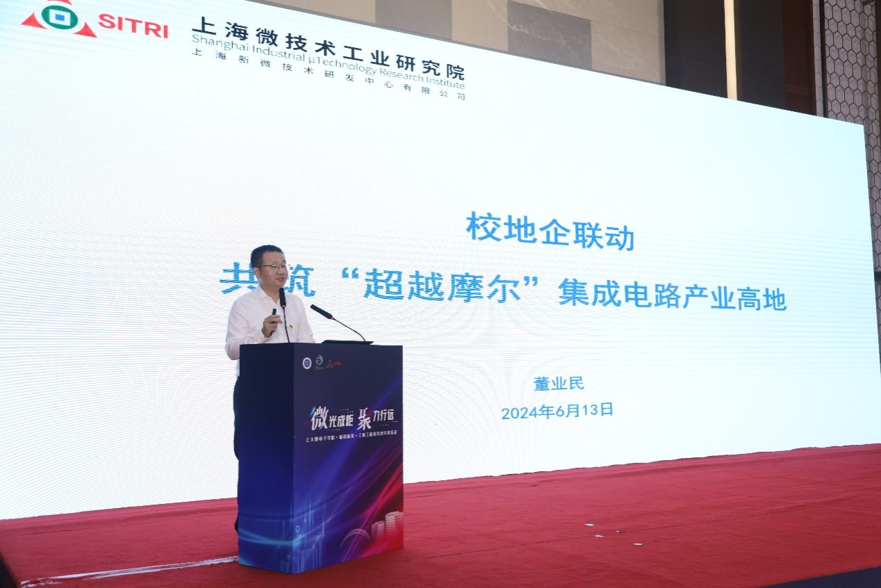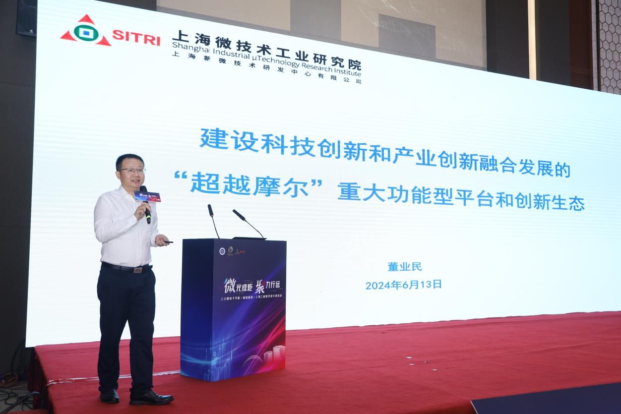 在随后的项目路演阶段,上海微技术工业研究院总经理董业民带来主题为《校地企联动 共筑“超越摩尔”集成电路产业高地》的主旨演讲。