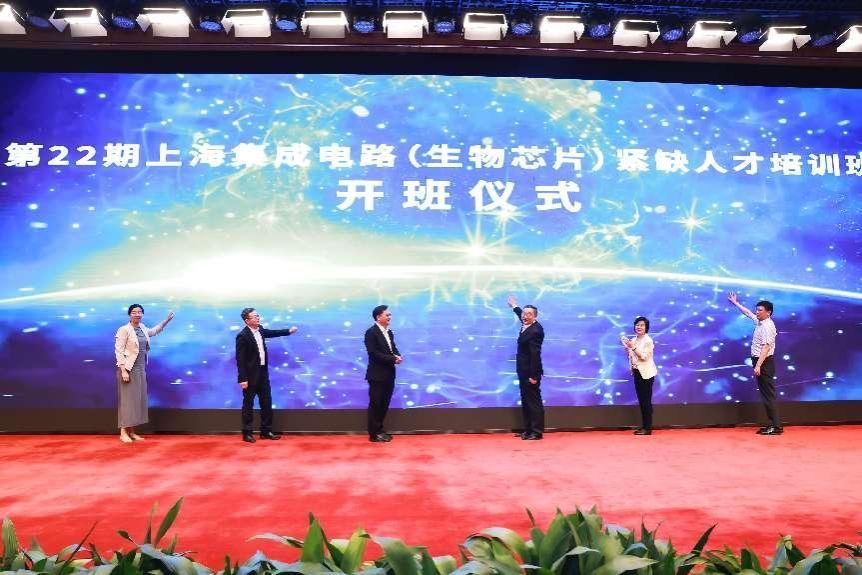 市教委副主任刘力、市经信委副主任汤文侃、嘉定区副区长陆祖芳与sunbet申搏官方网站党委书记成旦红,党委常委、组织人事部常务副部长沈艺、微电子学院院长赵建龙共同启动第22期上海集成电路(生物芯片)紧缺人才培训班开班仪式。