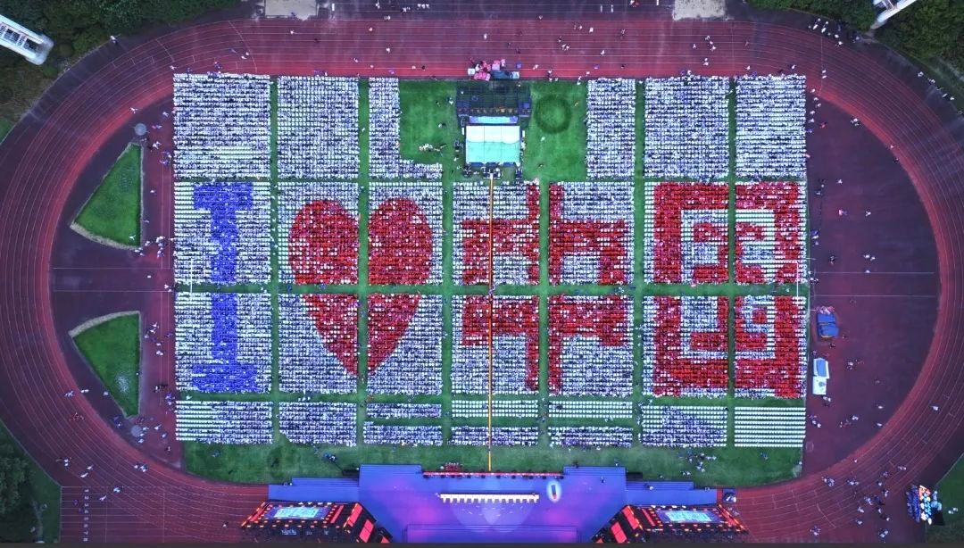 1.2万余名本硕博新生满怀青春热忱,从这里踏上逐梦之旅。他们身着玉兰白、sunbet申搏蓝、中国红三色新生服,汇聚成一幅“I ❤ 中国”的图案。