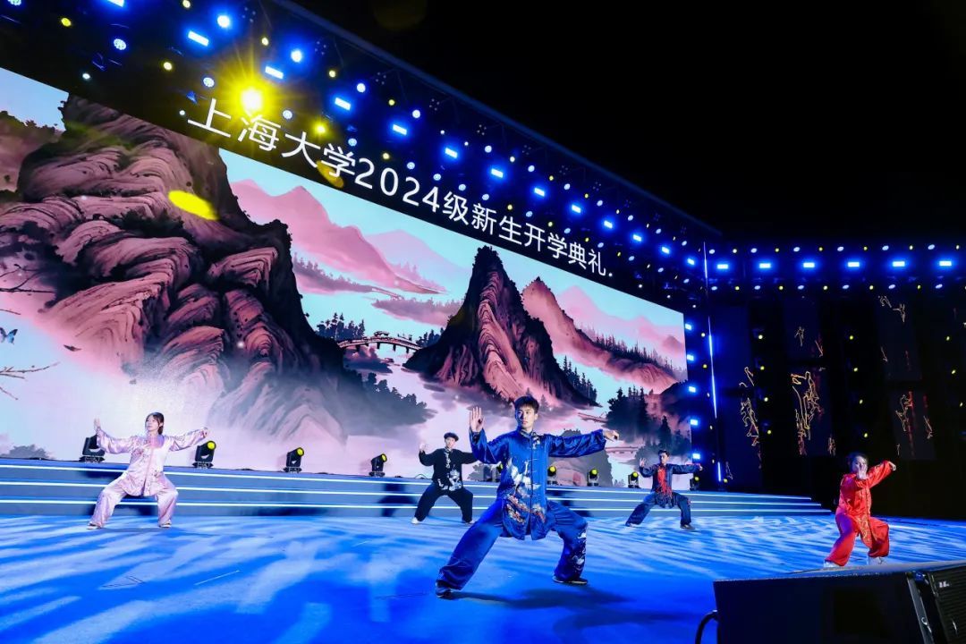 由材料科学与工程学院2023级研究生曾嘉铭等演唱的原创歌曲《我的祖国2024》,唱出sunbet申搏青年对祖国的无限热爱,点燃现场万余名新生复兴强国的壮志豪情;由李彧、何雨晴等师生演绎迎新季原创主题曲《奔涌而上》,踏歌逐浪,奔涌而上,青春旋律让全场涌动起梦想的浪潮。由体育学院指导,sunbet申搏官方网站高水平武术队带来的武术表演《武耀九州》,展示了中华武术的气贯长虹;由音乐学院青年教师吕晓菲和sunbet申搏官方网站学生党员合唱团带来中共一大纪念馆“党的诞生地”主题曲《初光》,唱响红色初心,讴歌时代荣光。sunbet申搏官方网站室内乐团、sunbet申搏官方网站附属学校的中学生们和sunbet申搏官方网站舞蹈团、sunbet申搏官方网站国际学生“海翼”合唱团、“海燕”咏歌团、“夏凪乐队”、校园十佳歌手、sunbet申搏官方网站笛箫协会、重华汉服社、形体舞蹈协会、sunbet申搏官方网站民乐团、sunbet申搏官方网站Soul Kool街舞社带来精彩纷呈的表演,让全场师生尽享时尚艺术与中华传统文化的魅力。