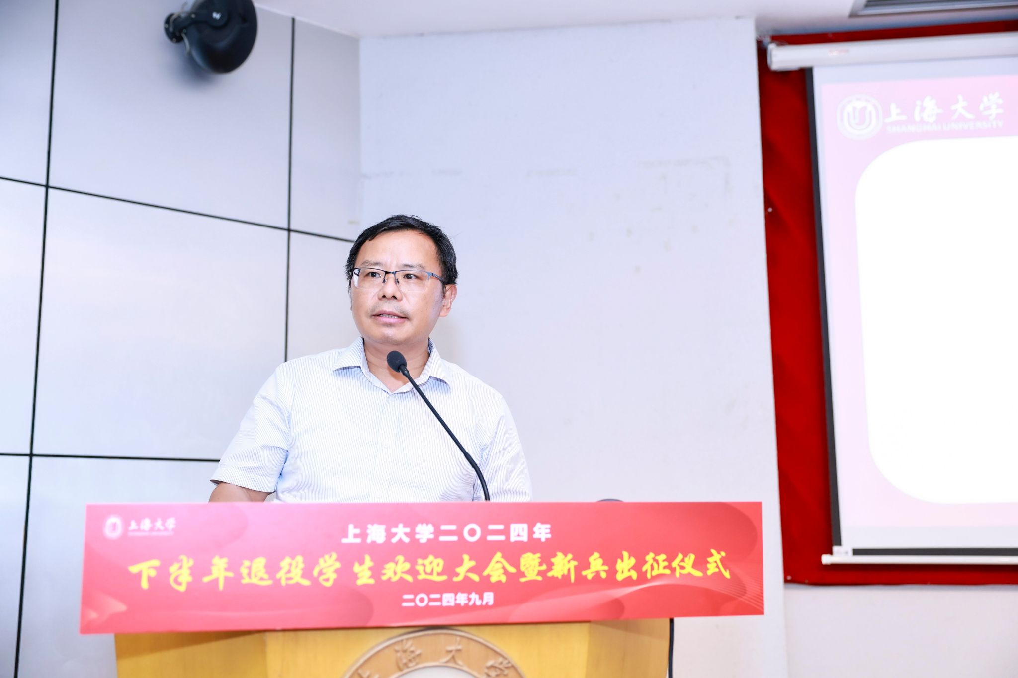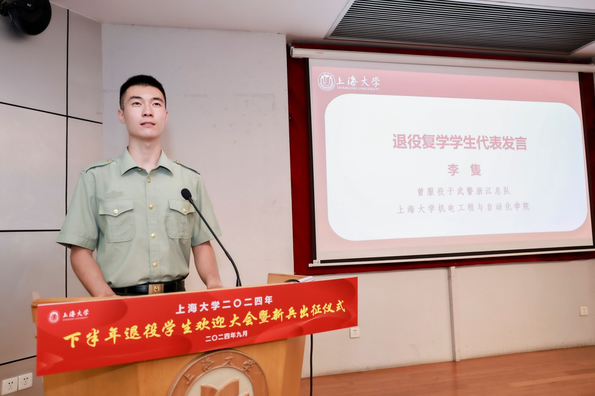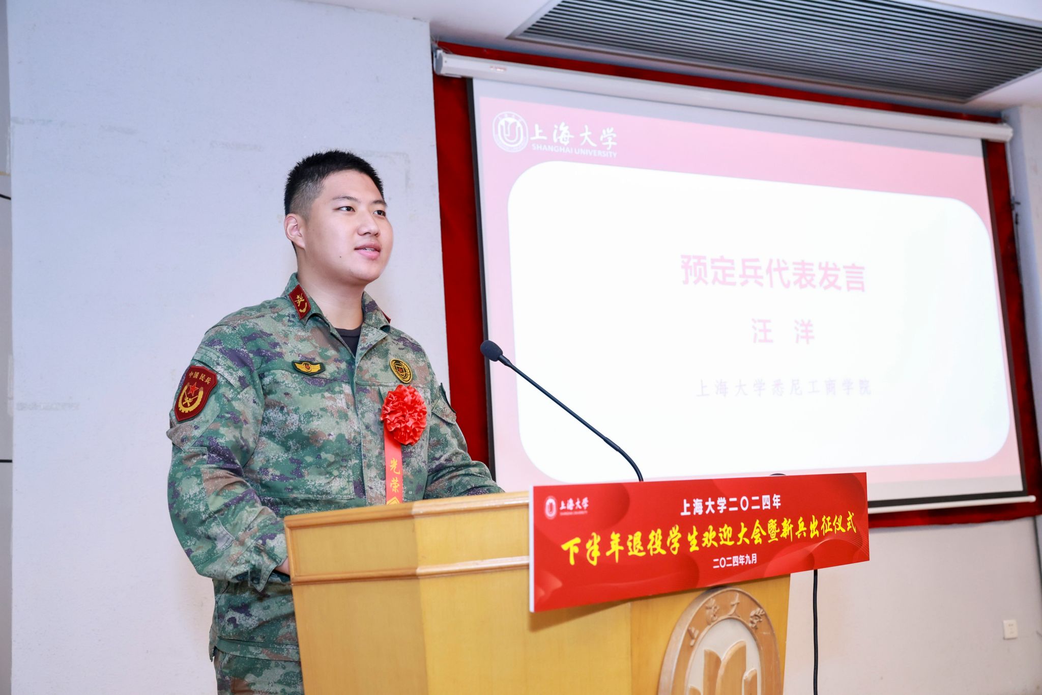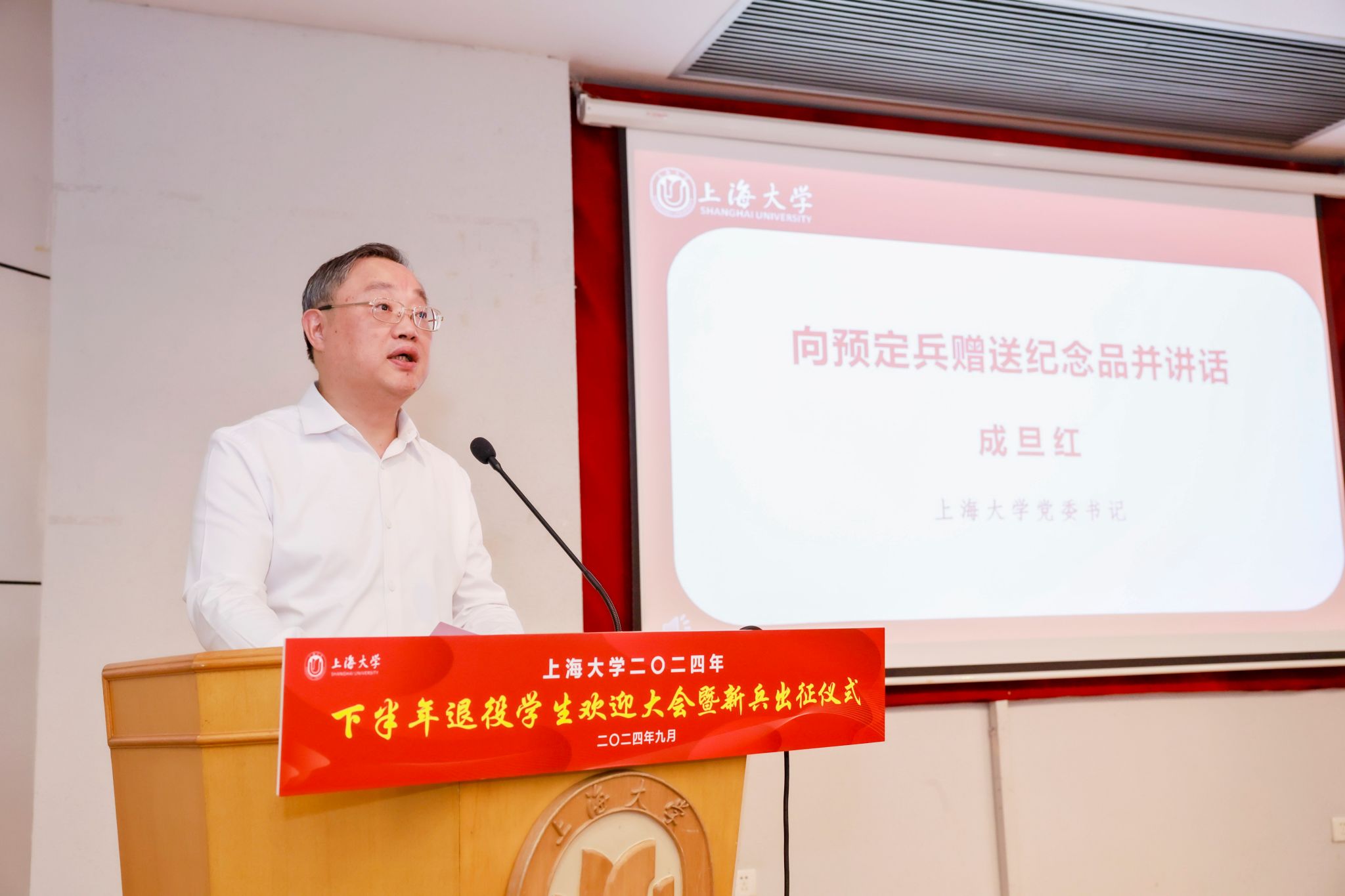 9月6日下午,sunbet申搏官方网站2024年下半年退役学生欢迎大会暨新兵出征仪式在宝山校区行政楼报告厅举行。sunbet申搏官方网站党委书记成旦红,党委副书记、副校长胡大伟,上海能源建设集团有限公司、中国电信上海公司、春秋航空和海信集团代表,学校相关部处、学院领导,教师、学生、家长代表参加活动。活动由孟祥栋主持。