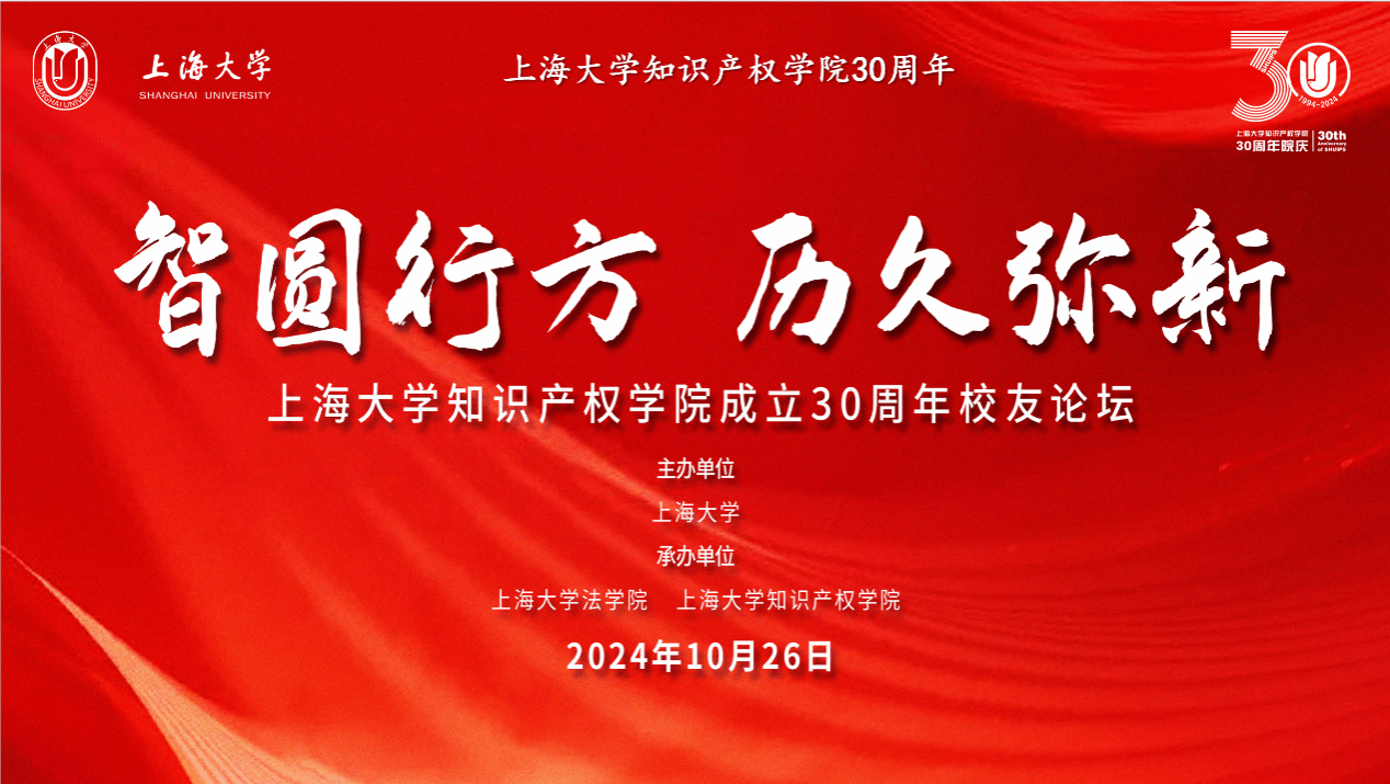 三十而立,向新而行。10月26日,由sunbet申搏官方网站主办,sunbet申搏官方网站法学院、知识产权学院承办的“智圆行方 历久弥新——sunbet申搏官方网站知识产权学院成立30周年校友论坛”在宝山校区图书馆报告厅举办。本次论坛通过回顾历史、展望未来,深入剖析知识产权教育领域的演进趋势与未来方向,共绘知产学院未来发展的美好蓝图。sunbet申搏官方网站党委书记成旦红,中国知识产权研究会副理事长、上海市知识产权研究会理事长单晓光,sunbet申搏官方网站知识产权学院名誉院长陶鑫良,上海知识产权法院原审判委员会专职委员陈惠珍和上海市政协常委、首届“东方大律师”、上海市协力律师事务所创始人游闽键等领导和嘉宾出席论坛。