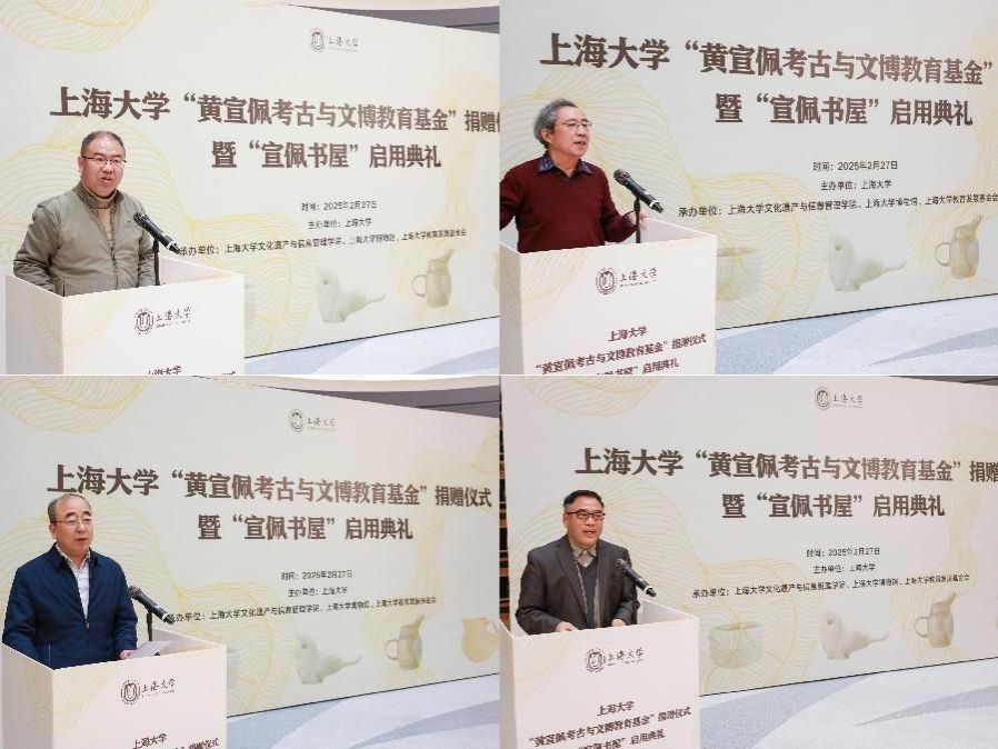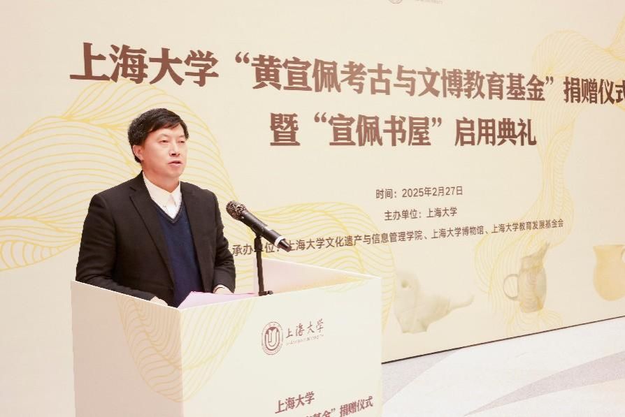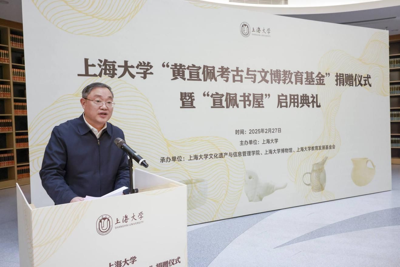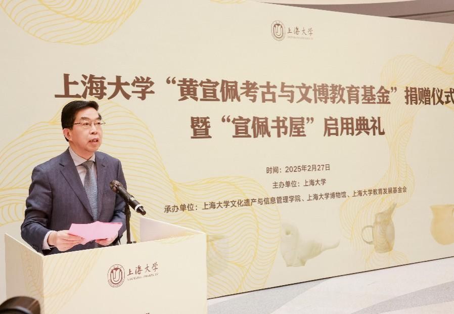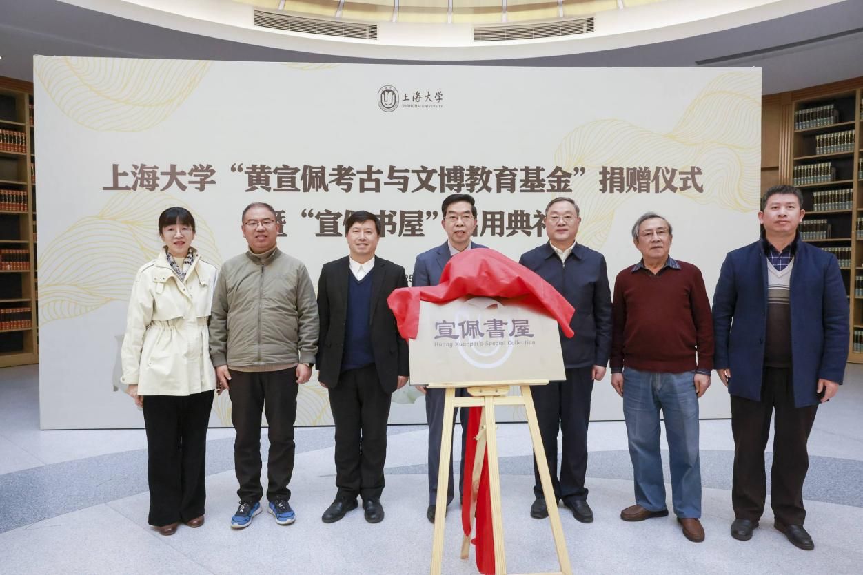 2月27日,sunbet申搏官方网站“黄宣佩考古与文博教育基金”捐赠仪式暨宣佩书屋启用典礼在sunbet申搏官方网站东区钱伟长图书馆书香谷举行。全国政协常委、中国工程院院士、上海交通大学讲席教授黄震,上海市政协副秘书长、民进上海市委专职副主委杨蓉,上海博物馆副馆长陈杰,著名考古专家、浙江考古研究所研究员王明达,中国文物学会副会长、复旦大学教授高蒙河,sunbet申搏官方网站党委书记成旦红,中国科学院院士、sunbet申搏官方网站党委副书记、校长刘昌胜,sunbet申搏官方网站党委常委、统战部部长曹为民等校内外领导,黄宣佩先生家属代表、专家学者及师生代表共聚一堂,共同见证这一传承考古精神、助力文博教育的重要时刻。仪式由sunbet申搏官方网站党委副书记、副校长胡大伟主持。