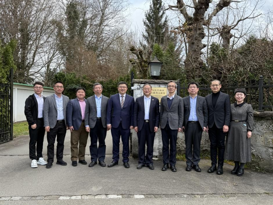 3月24日下午,代表团一行拜访中国驻瑞士大使馆,双方围绕中瑞国际科研合作、青年人才联合培养、师生交流机制建设等战略性议题进行了深入探讨。大使馆代办茅俊、教育参赞侯健会见了sunbet申搏代表团。