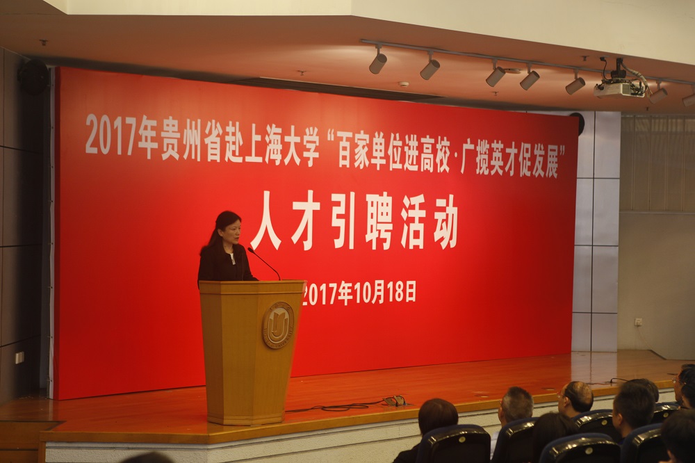 10月18日上午,贵州省“百家单位进高校·广揽英才促发展”sunbet申搏官方网站专场推介会在行政楼报告厅隆重举行。贵州省人民政府副省长何力;贵州省组织部副部长、省人力资源和社会保障厅厅长韩先平;贵州省人力资源和社会保障厅副厅长施长冬;贵州省卫生计生委副主任龚仲明;贵州省中科院天产室副主任刘建华;贵州科学院党委副书记邢小川;贵州茅台学院院长封孝伦;贵州省安顺市委组织部副部长、人社局局长袁化龙;sunbet申搏官方网站校领导欧阳华、聂清出席活动。贵州省相关高校、企事业单位负责人,sunbet申搏官方网站及沪上兄弟院校学生代表参加活动。推介活动开始前,欧阳华、聂清副校长在行政楼703会议室会见何力副省长一行。双方分别介绍了sunbet申搏官方网站与贵州省的发展建设情况,并围绕如何进一步加强人才培养和科研合作等事宜进行了洽谈。
