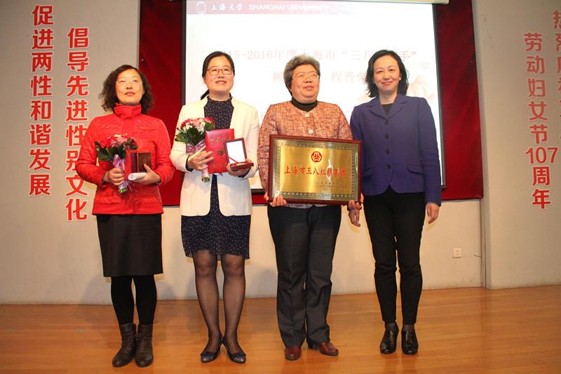 大会表彰了上海市三八红旗手2人、上海市三八红旗集体1个、上海市教育系统三八红旗手2人、上海市教育系统三八红旗集体1个、sunbet申搏官方网站三八红旗手25人、sunbet申搏官方网站三八红旗集体5个、sunbet申搏官方网站优秀妇女工作者8人和先进妇女之家6个。荣获上海市三八红旗手的教务处副处长顾晓英研究员、上海市教育系统三八红旗集体机自学院无人艇总体室主任谢少荣教授接受大会采访,分别讲述了她们的成功经验和体会。荣获上海市三八红旗集体的离退休工作处陆群英处长代表获奖集体发言,让现场观众领略了一个热心为退休老同志服务的女性团队的责任担当和巾帼风采。荣获上海市教育系统三八红旗手的管理学院许科老师,更是强调了作为一个女教师对课堂的热爱和对学生的关爱之情。