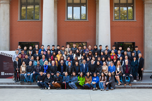 3月3日午后,同样的时间同样的地点,新生们拍下了他们在上海温哥华电影学院的第一张大合照,有同学表示有生之年第一次跟贾樟柯院长合照,激动坏了。有些面试时彼此留下深刻印象的师生,在开学第一天就开始了有爱的互动。