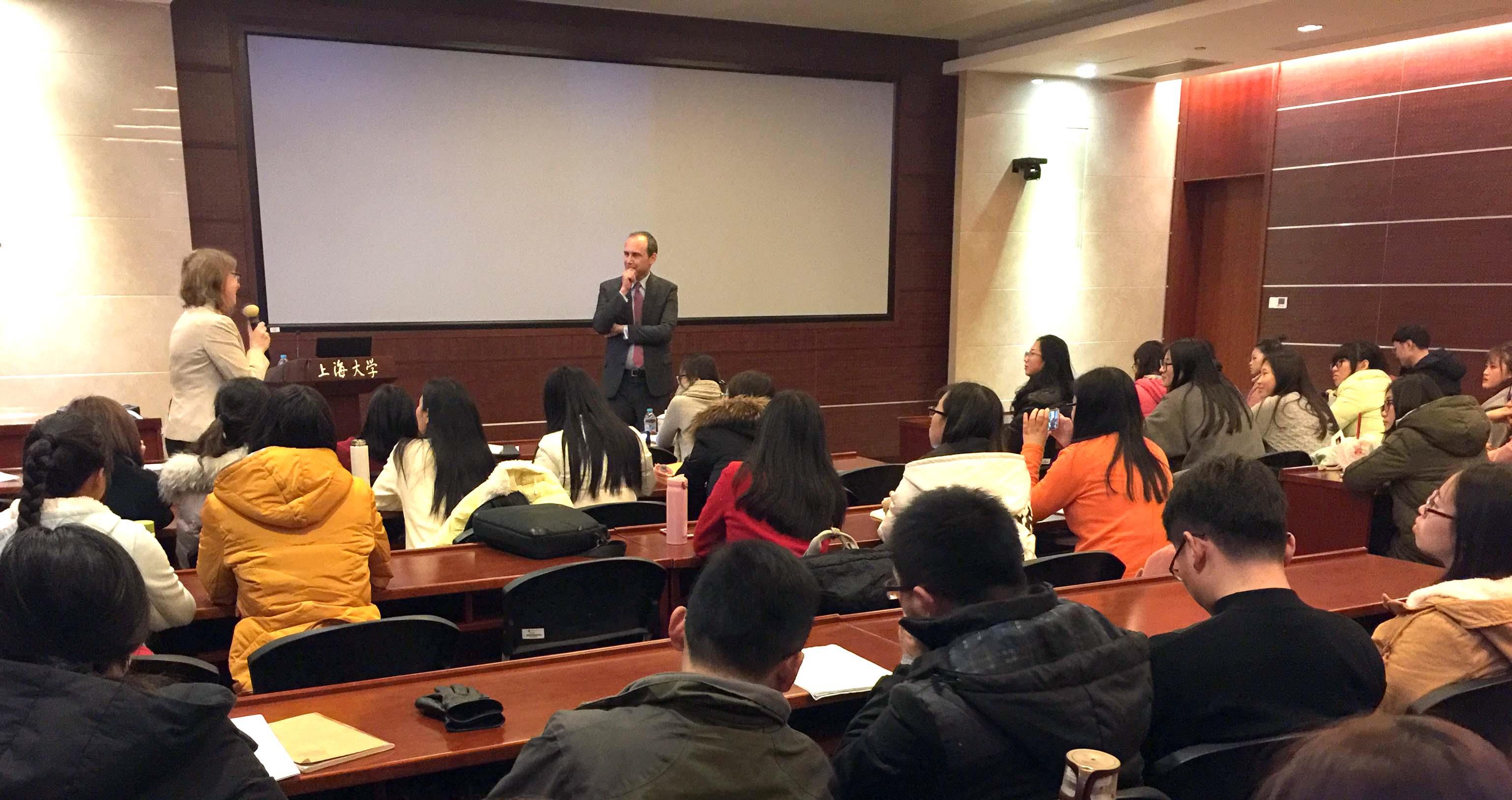 2017年2月23日,美国驻上海总领事史墨客(Hanscom Smith),文化领事卢乔书(Lustig Joshua)等四人访问sunbet申搏官方网站,史墨客先生在宝山校区乐乎新楼思源厅为sunbet申搏师生带来了关于中美双方合作关系的讲座。