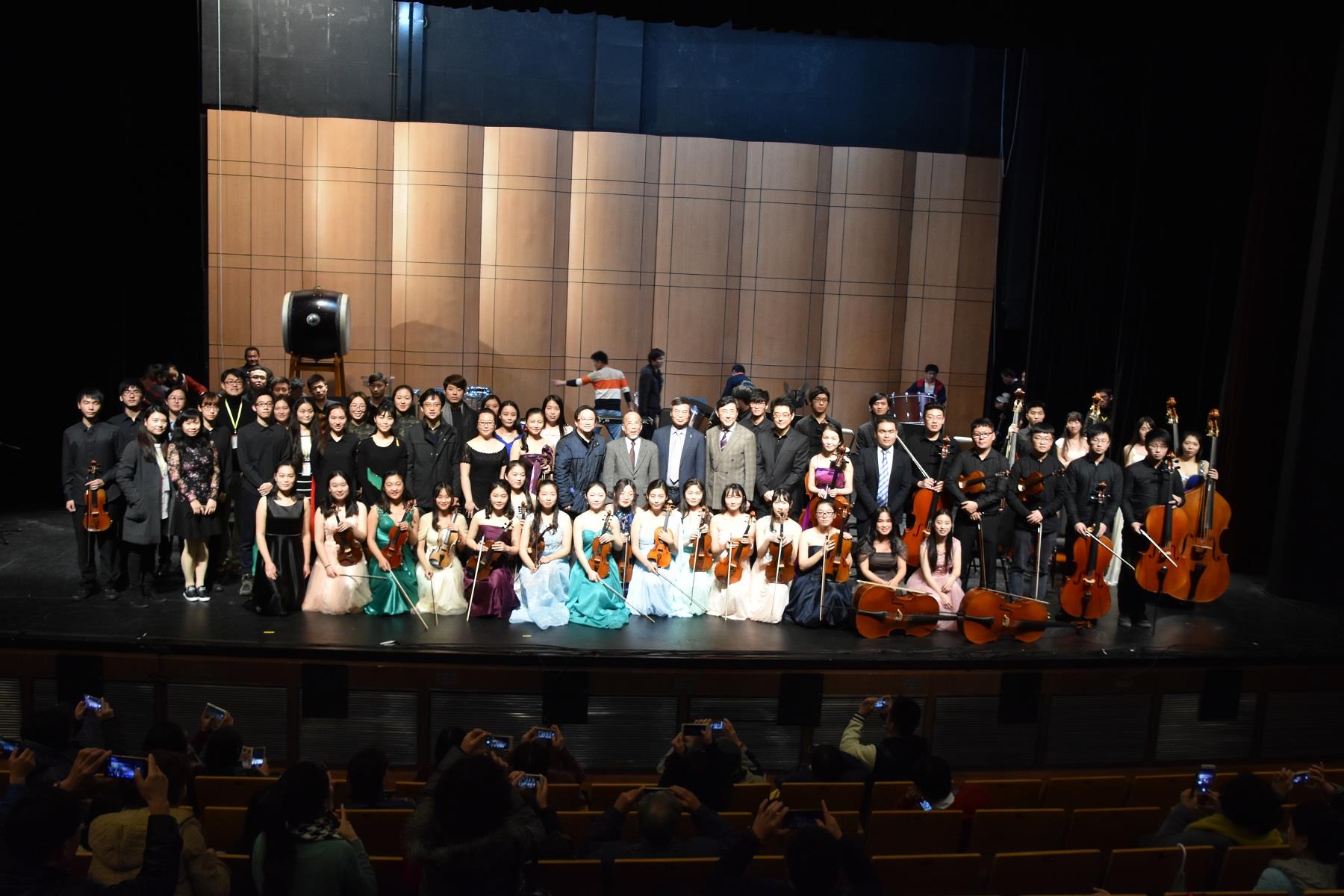 在艺术课堂下半场,大剧院的舞台变成了sunbet申搏官方网站音乐学院师生的音乐会主场。承袭sunbet申搏官方网站2017年交响电影新年音乐会的主题,sunbet申搏官方网站打击乐团带来电影《爱国者》的插曲《战争诗篇》,以节奏明快的描写战争场面的打击乐旋律拉开整个音乐会的序幕,由sunbet申搏官方网站音乐学院高一鸣老师原创的为马头琴、呼麦、弦乐及长笛、打击乐而作的曲目《纳伦多伦斯道》在sunbet申搏官方网站校内首演就博得满堂彩,高一鸣老师介绍了作品的创作背景、初衷以及作品特色,《纳伦多伦斯道》取自蒙语“给太阳的歌”,这首作品特别邀请了内蒙古艺术学院的学生塔米尔担任呼麦和马头琴的演奏,此曲的一大亮点是运用了理发店的剃头机器来模拟草原上奇异昆虫嗡嗡作响之声,精妙之处令人称奇,浓郁蒙古特色的呼麦和马头琴的旋律优美动人、气息宽阔、感情深沉,充满了浓郁的草原气息。由著名旅美小提琴家、sunbet申搏官方网站音乐学院副院长夏小曹教授与音乐学院胡君老师共同演奏的肖斯塔科维奇的《前奏曲》、《加沃特舞曲》、《华尔兹》温柔华丽、委婉动人,堪称完美。马林巴与弦乐团合作演奏作品《巴西舞曲》热情奔放、节奏鲜明、旋律欢快,再现节日的欢乐气氛。由夏小曹教授与sunbet申搏官方网站音乐学院双簧管海归博士唐晓斌共同演奏的巴赫《D小调二重协奏曲》演奏技巧颇高、富于变化、旋律优美,而整个sunbet申搏官方网站弦乐团的华丽登场更是让所有观众眼前一亮,随后乐团演奏的选自经典电影《教父》主题曲《温柔倾诉》,缠绵温婉的旋律向人们低诉着年轻教父的痛苦和迷茫,辛酸和无可奈何……。